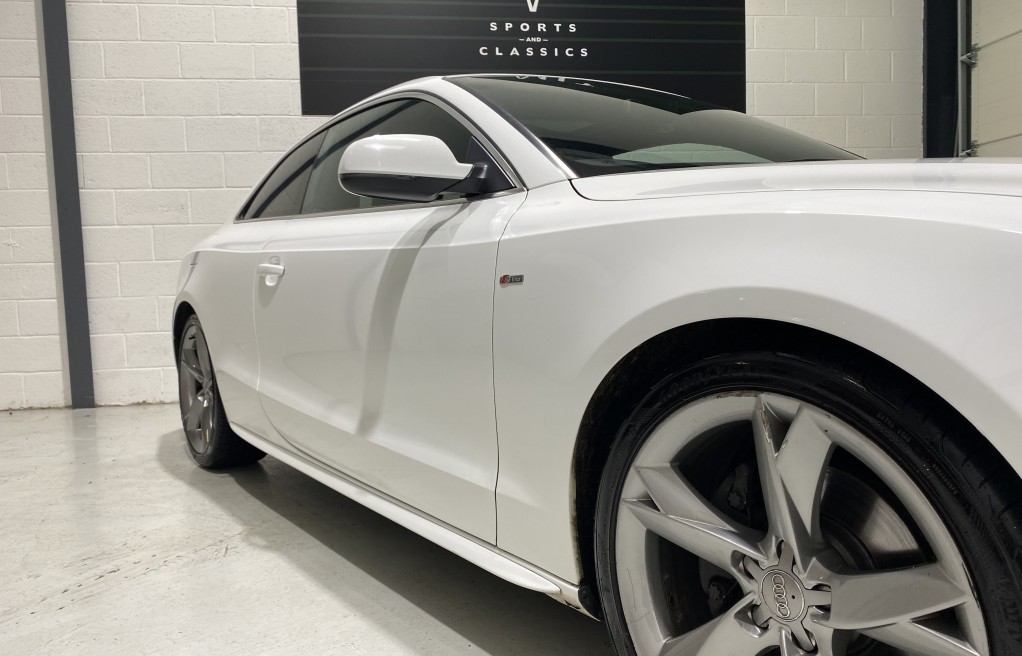 We are delighted to offer this superb, Audi A5 2.7 TDi Sline coupe finished in "Ibis White" metallic paint, with full black leather interior and heated seats. This vehicle comes with an excellent specification as standard, (please see full specification list below) however In addition, it comes with nearly every optional extra! Available. Some of these extras include, Panoramic sunroof, Bang and Olufsen HiFi speaker system, full black leather interior, Technology package, Satellite navigation, Xenon headlights, Black stying package, Bluetooth hands free, DAB radio, Electric seats with lumbar support, Cruise control, and front and rear parking sensors to mention just a few!
