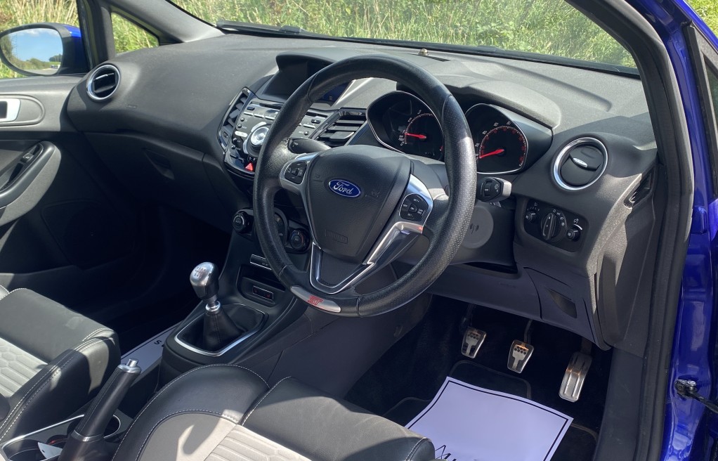 We are delighted to offer this excellent, St-3 fiesta, finished in "Spirit Blue" metallic paint, with black/grey part leather interior. Being an "ST-3" model, it comes with an excellent level of equipment as standard, however, this vehicle comes with the rare, yet extremely desirable, Ford approved "Mountune 215BHP" performance upgrade package. This package was fitted by Sandcliffe Ford to this vehicle as demonstrator model of theirs and comes with certification. This vehicle was then sold to the 2nd, and last owner in September 2015, making it a demonstrator plus one owner from new. In addition, this vehicle comes with features such as: Heated front seats, keyless entry and start, Electric folding exterior mirrors, rear parking sensors, Cruise control and Recaro seats to mention just a few (please see full specification list below).