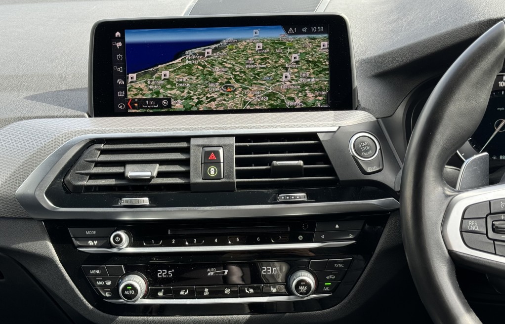 We are delighted to offer this exceptional, BMW X3 30d Msport, finished "Black Sapphire" exterior metallic paint, with full black leather interior, and heated seats. Furthermore, this vehicle comes with a long list of optional extras, some of which include: Msport Pro pack (20" Bi Colour alloy wheels, Msport braking system, Harmon Kardon HiFi)| Detachable Towbar | Comfort Package |Comfort Access Keyless entry and start | Head Up Display | Acoustic Glazing | Adjustable backrest in rear seats |and sun protection glass to mention just a few (please see full specification list below). In addition to the excellent specification, this vehicle has 2 keys, and It comes with 3 months comprehensive warranty which can be used at any VAT registered garage of your choice, including BMW specialists, or even main dealers. Finally, it comes with full Service history, all of which is with BMW. The specific Service history details are as follows:
