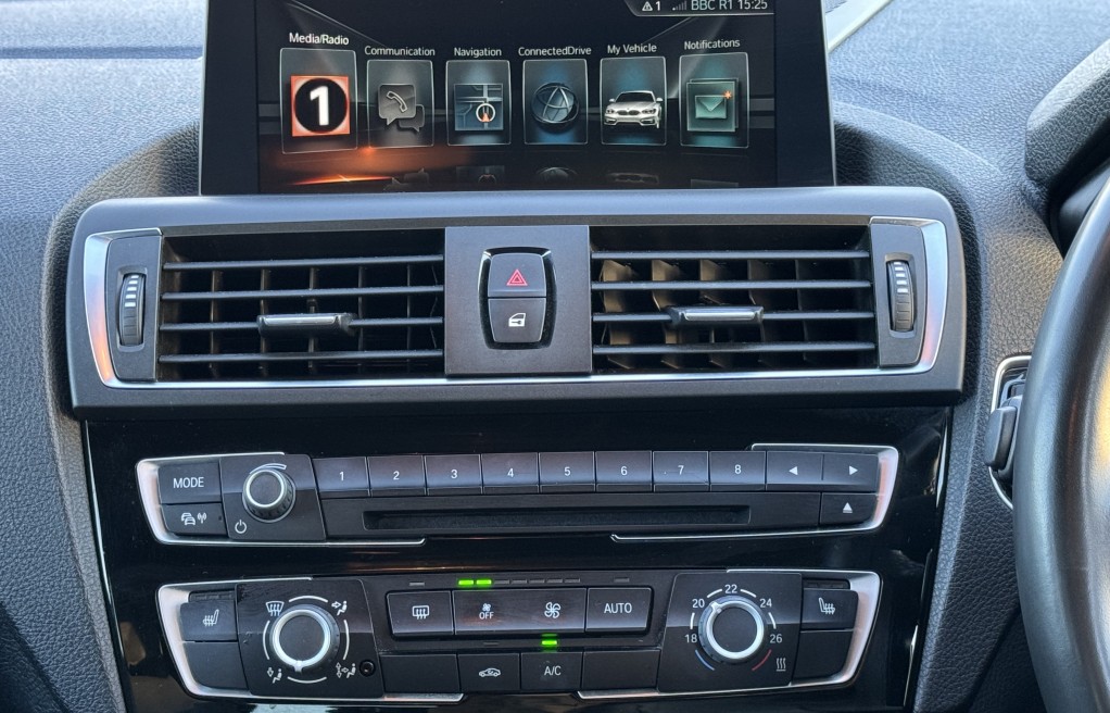 12V Power Socket - Centre Console, 12V Power Socket - Passenger Footwell, 18in Alloy Wheels - M Double Spoke in Ferric Grey - 461M, Active Differential Brake - ADB Sport - Electronic Differential Lock in DSC-Off Mode, Air Conditioning - Automatic - Single Zone, Airbags, Alarm System - Thatcham 1 with Remote Control and Engine Immobiliser, Ambient Lighting - Switchable BMW Classic Orange - Cold White - LED, Armrest - Front with Sliding Adjustment, BMW ConnectedDrive Online Services, BMW ConnectedDrive Services, BMW Emergency Call, BMW Navigation System, BMW Professional Radio - Single CD and MP3, BMW TeleServices, Battery Age Recognition Function, Battery Safety Cut Off, Bluetooth Hands Free with USB Audio Interface, Brake Pad Wear Indicator - Front and Rear, Bumper System Front and Rear - Replaceable Deformation Elements for Impacts Up to 9mph, Central Locking Switch - Doors - Fuel Filler Cap - Luggage Compartment, Check Control Warning System for Monitoring of Lights and Door-Luggage Compartment Open Warning, Child Proof Locking System - Rear Doors, Child Seat ISOFIX Attachment for the Two Outer Rear Seats, Condition Based Service, Crash Sensor - Activating Central Locking Release - Hazard Warning Lights - Battery Safety Cut Off - Interior Lighting, Cupholders Two with Sliding Cover and Inlay Mat, DAB Digital Radio, DSC - Dynamic Stability Control Plus, Direction Indicator - Side Repeaters - Integrated in Exterior Mirrors, Direction Indicator Lights - Clear Lenses, Door Sill Finishers - M Designation, Drive Performance Control - ECO PRO - Comfort - Sport - Sport Plus Modes, Dynamic Brake Lights, ECO PRO Mode, Electric Windows - Front and Rear with Open-Close Fingertip Control - Anti-Trap Facility and Comfort Closing Function, Exhaust Tailpipe - Chrome, Extended Storage, Exterior Mirrors Electrically Adjustable, Exterior Parts in Body Colour, Exterior Trim - High Gloss Shadowline, First Aid Kit and Warning Triangle, Floor Mats - Velour, Glove Compartment, Glovebox - Handle with Chrome Surround, Grab Handles - Integrated in Roof Linings - Four, Handbrake and Gear Knob - Leather, Head Restraints - Rear and Folding, Headlining - Anthracite, Heat Protection Glazing with Green Tint, High Level Third Brake Light, Incorrect Fuelling Protection System, Instrument Cluster - Sports with Red Highlight, Interior Lighting - Front Centre Over Interior Mirror and Rear Centre, Interior Trim - Aluminium Hexagon with Estoril Blue Finisher, Kidney Grille - Extra Wide High Gloss Black Vertical Slats, LED Fog Lights - Front, LED Headlights, Lashing Eyes in Luggage Compartment at Sill x2, Lights-On Warning by Audio Warning Signal When Ignition is Switched Off, Locking Wheel Bolts, Luggage Compartment - Light, Luggage Compartment Access via BMW Roundel, M Aerodynamic Bodystyling, M Logo Designation Chrome - Side, M Sport Multi-Function Leather Steering Wheel - Three-Spoke, Model Designation, Multifunction Controls for Steering Wheel, Non Smokers Package, OBC - On-Board Computer, Oil Temperature Display via On-Board Computer Shown in Central Screen in Instrument Cluster, Optimum Shift Indicator, Personal Profile, Power Steering - Electric, Rain Sensor with Automatic Headlight Activation, Real Time Traffic Information, Rear Fog Light - Offside, Rear Seat Headrests - Outer Headrests Folding, Rear Window Aerial, Remote Control Including Integrated Key - 2, Remote Control with Integrated Key with Insert in Blue, Reversing Light in Rear Cluster - Nearside, Run Flat Tyres, Seat Belt Security Check for Driver and Front Passenger, Seats - 60-40 Split Folding Rear, Servotronic Steering, Shark Fin, Side Armrests - Front and Rear Integrated into Door Trim, Side Impact Protection, Speed Limit Function, Sport Seats - Front, Start-Stop Button with Comfort Go Keyless Engine Start and Auto Start-Stop Deactivation Button, Steering-Wheel Column Adjustment - Manual, Storage Compartment - Rear Centre Console and in Door Trim - Front, Sun Visors with Vanity Mirrors and Ticket Holder, TPMS - Tyre Pressure Monitoring System, Three-Point Seat Belts - All Seats, Twin Horns, Tyres - Reduced Rolling Resistance, Visible VIN, Welcome Lighting - LED, Windscreen Wiper - Rear