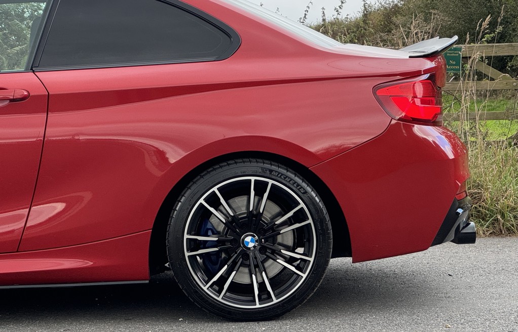 We are delighted to offer this incredible BMW M235i, finished in "Melbourne Red" exterior paint, with "Black Dakota " leather interior. As mentioned, this vehicle comes with an exceptional list of optional extras, one of the highest we have ever seen, and has been enhanced by the very well respected Phantom Tuning Ltd. Some of which include: | BMW 706M style 18" alloy wheels, shod in Premium Michelin Pilot sport tyres | BMW Mperformance style Bodykit |Boot lip spoiler | BMW Mperformance Kidney grills | Phantom Tuning custom remap to 400bhp, dated March 2024, with NO pops and bangs, and also no loud cold start to ensure its as subtle, and most importantly as SAFE as possible whilst giving it the enhanced N55 M2 performance stats| Phantom tuning 8HP gearbox software upgrade | Custom Mperformance style exhaust backbox which isn't loud, or "droney" as the rest of the exhaust system is standard and includes resonators (£700.00 invoice supplied and fitted 06/04/2024) | BMW Professional Satellite Navigation and Harmon Kardon HiFi to mention just a few items