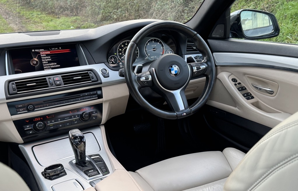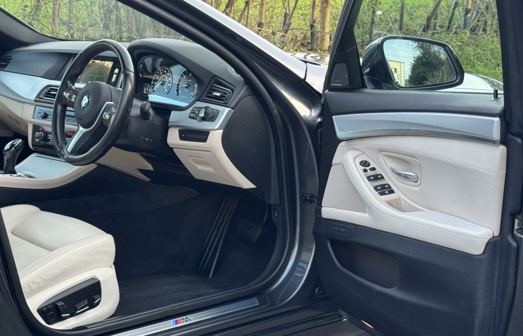We are delighted to offer this superb BMW F11 530d Msport. This vehicle is finished in "BMW Mineral Grey" metallic paint, complimented with BMW Ivory White leather interior. This vehicle has an incredibly extensive list of extras! In fact, One of the highest specifications we have seen on a F11 BMW, totalling over £13,560 from NEW!! In addition, it comes with extensive Service history, all of which is with BMW or BMW specialists, 4 x near new condition BMW Star rated Bridgestone tyres, & 2 keys. The full service records can be seen at the end of the advert images. Very Finally, this car has been subject to our extensive 150 point Summit Safe health check, to ensure it meets our extremely high standards for mechanical condition, as well as our stringent cosmetic standards. Whilst every effort has been made to ensure the accuracy of the vehicle specification, errors can occur so please check with a member of the team to avoid disappointment.