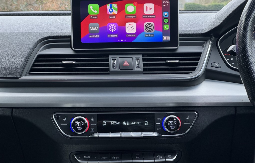 We are delighted to offer this superb Audi Q5. This vehicle is finished in "Floret Silver" metallic paint, complimented with full black "Fine Nappa S-Line" quilted leather seats. Furthermore, This vehicle has an incredibly extensive list of extras! Including items such as Matrix LED Headlights, Witter Detachable Towbar, Fine Nappa Seats, Split fold rear seat plus, Rear Camera, Bang And Olufsen surround sound, Tech pack with digital cockpit, and 20" Alloy wheels (see full list below) In addition, it comes with extensive Service history, all of which is with Audi Main dealers! 4x Premium Pirelli Scorpion Tyres (5.4 to 6.5mm tread depth) & 2 keys. The service records are as follows...