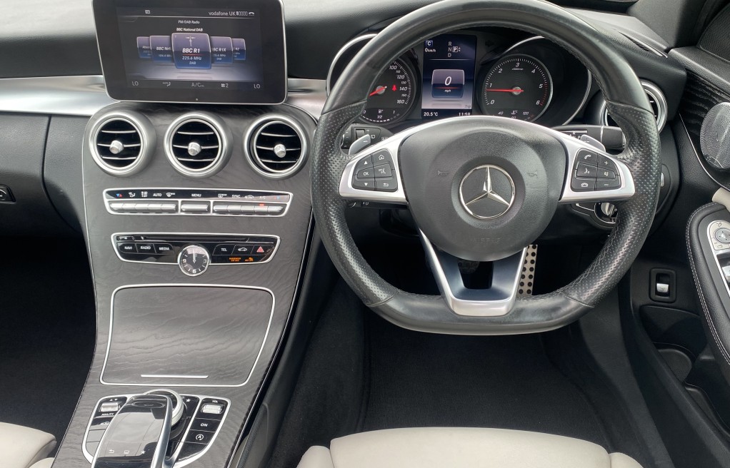 We are delighted to offer this absolutely superb, unique specification Mercedes C250d AMG. Being a "Premium Plus" AMG model, it comes with an exceptional level of equipment, including features such as: Optional Seat Comfort Package, Optional Burmester Surround sound, Optional Airmatic suspension ride control system, Panoramic glass sunroof, Reverse camera, heated seats, DAB radio, Bluetooth Interface hands-Free Telephone, Bi-Xenon headlights, front and rear parking sensors and fully electric seat adjustment to mention just a few features. (please see full specification list below). Furthermore, it also comes with 3 months Autoprotect comprehensive warranty (extended warranty's can be purchased) and 2 Keys. Finally, its comes with full service history, the service history details are as follows: