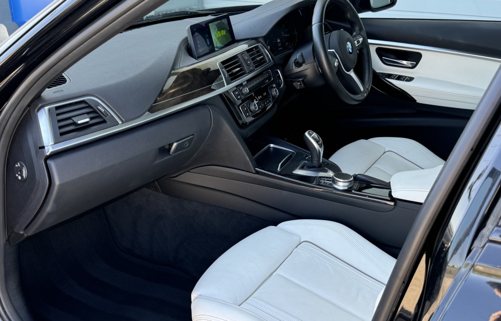 We are delighted to offer this superb BMW 330d X-drive Touring. This vehicle is finished in "BMW Black Sapphire" metallic paint, complimented with the very rare BMW Individual Opal white merino leather interior.