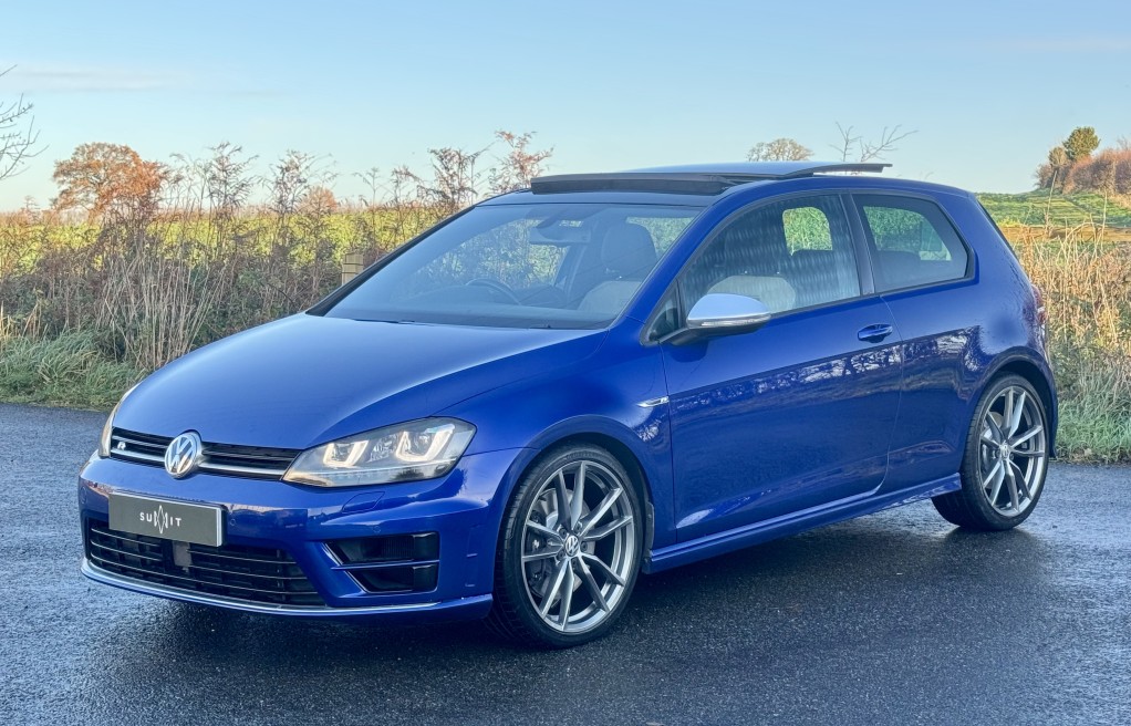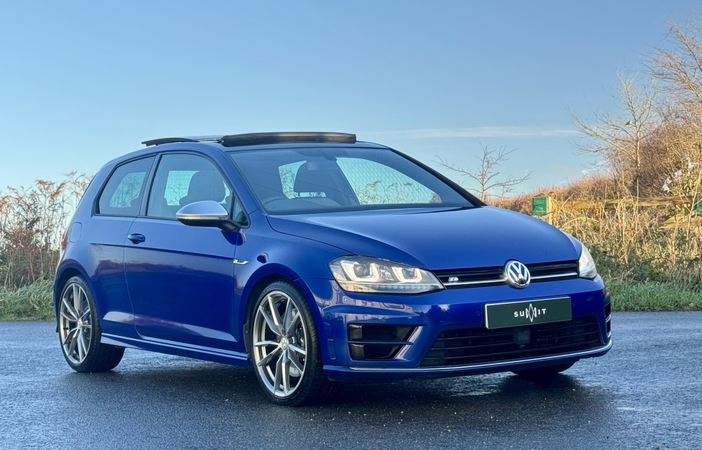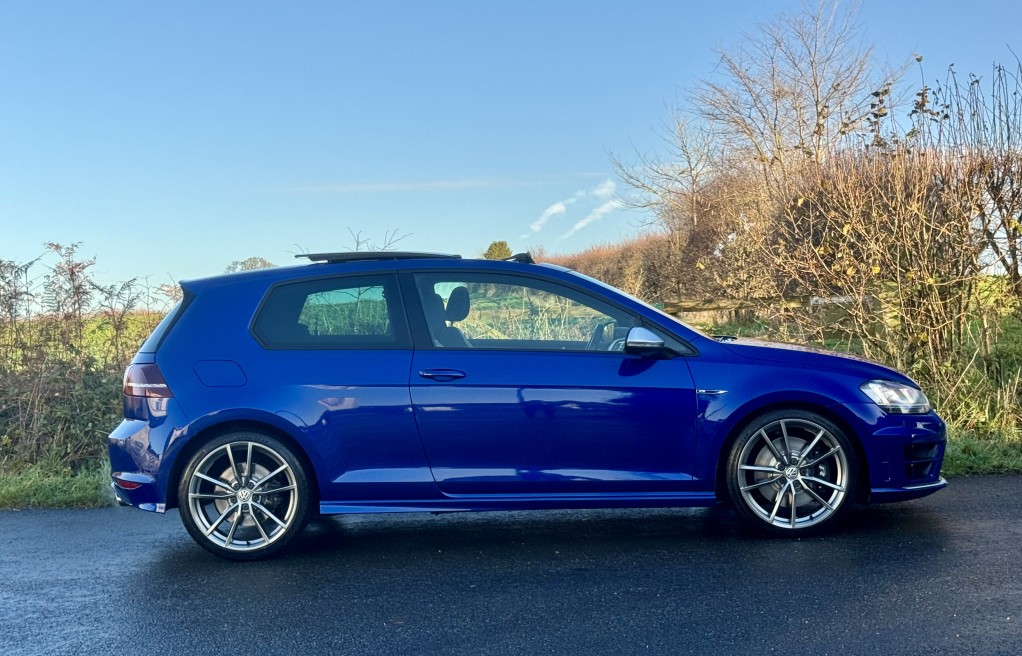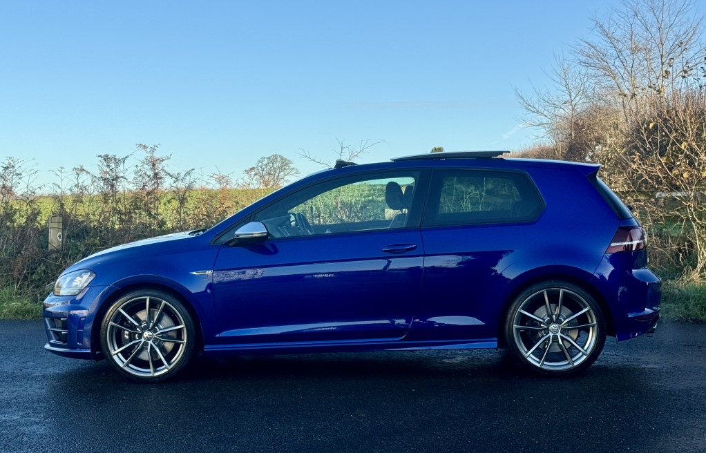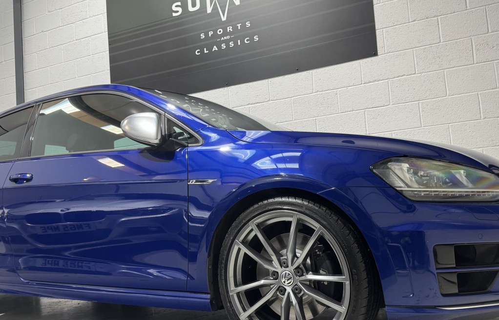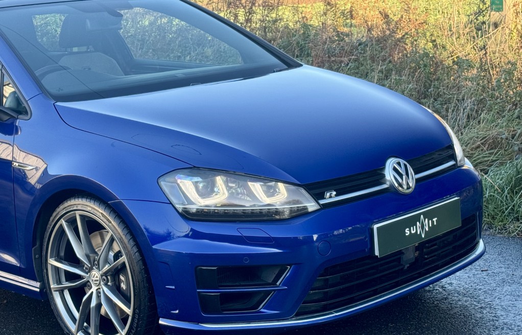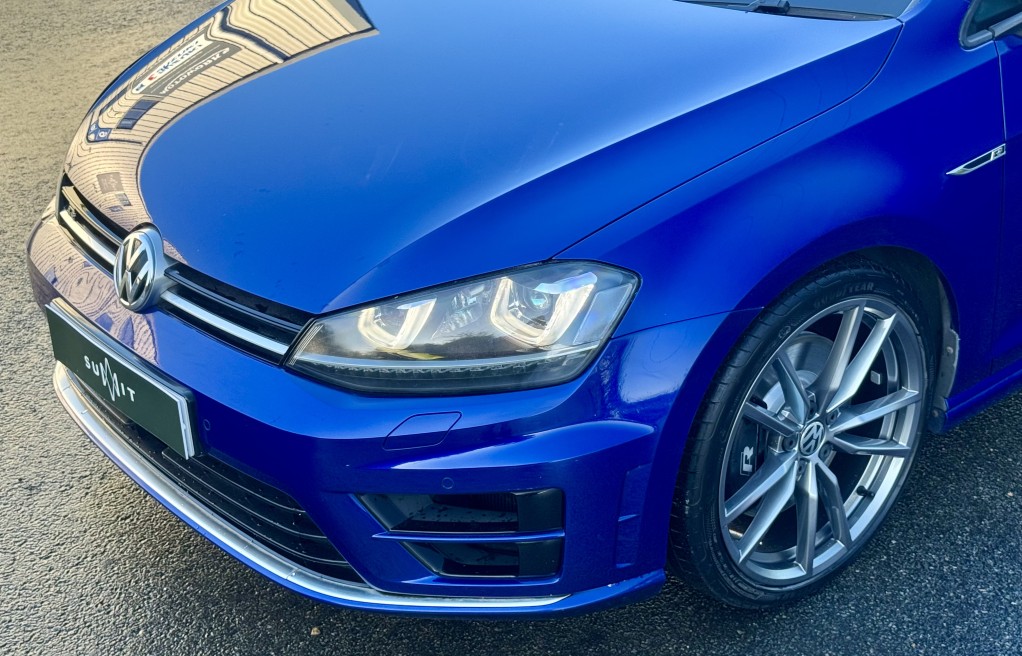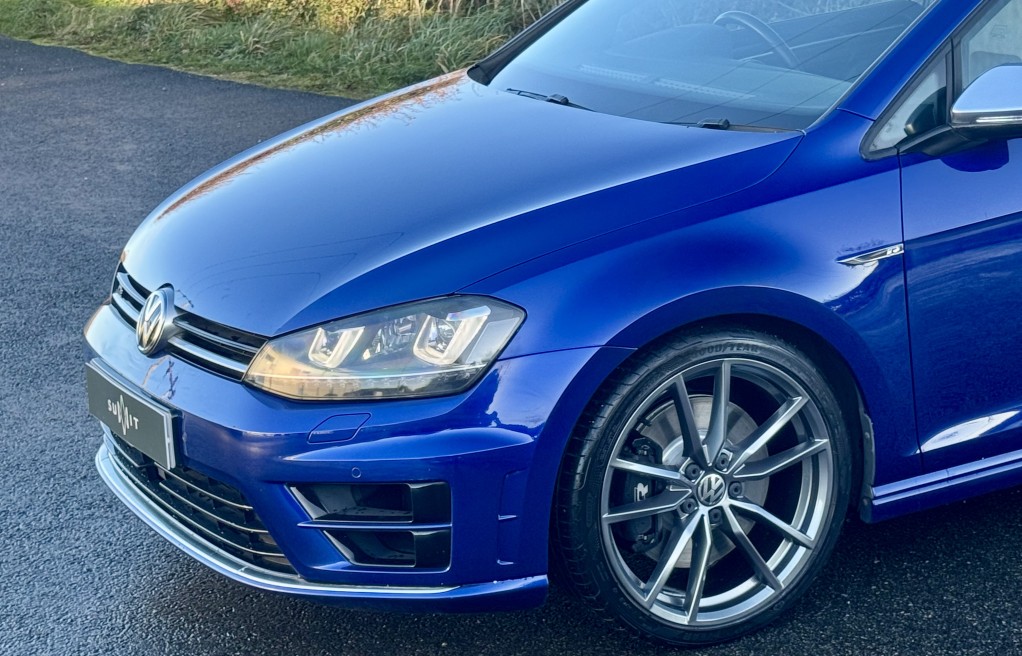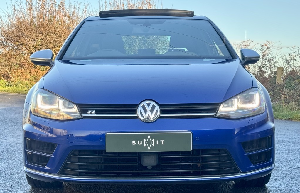 We are delighted to offer this superb Volkswagen Golf R, purchased directly from its 1st and only owner, after he decided to treat himself to a new MK8.5 Golf R to quotes "see him out". This vehicle is finished in the very desireable "Lapis blue" metallic paint, and comes with an incredibly extensive list of extras! In fact, One of the highest specifications we have seen on a Mk7 Golf R, Including Dynamic Chassis Control, Panoramic Sunroof, Genuine VW 19" Pretoria Wheels, Reverse camera and MORE! Finally, it comes with extensive Service history & 2 keys. The service records are as follows....