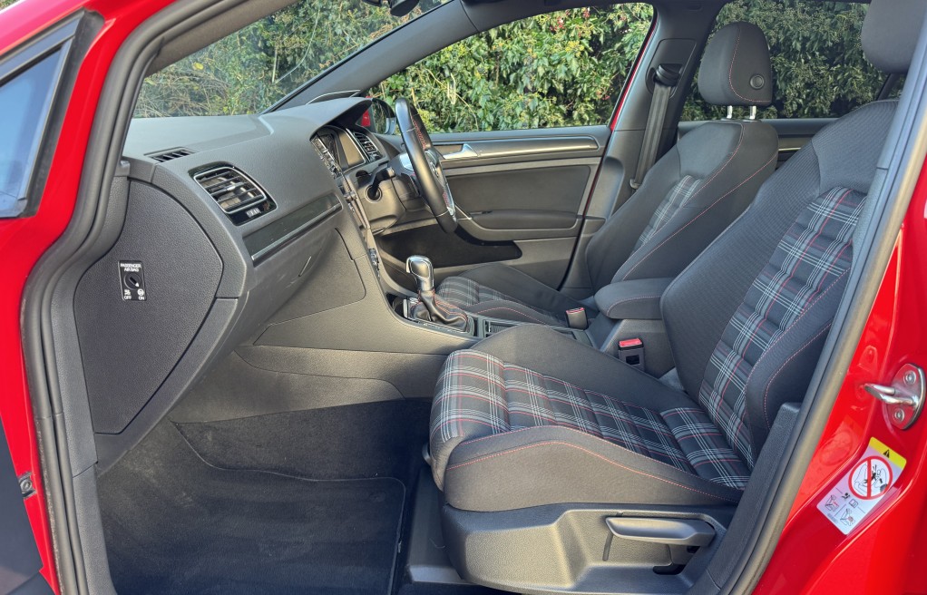 We are delighted to offer this superb Volkswagen Golf GTi. This vehicle is finished in "Tornado Red" metallic paint, complimented with the iconic tartan cloth interior. This vehicle has an incredibly extensive list of extras! In fact, One of the highest specifications we have seen on a mk7.5 Gti! Including 19" Santiago Wheels, Dynamic Chassis control, DYNAUDIO Surround sound system, Keyless entry and Rear view camera to mention just a few. In addition, it comes with extensive Service history, all of which is with Volkswagen, & 2 keys. The service records are as follows....