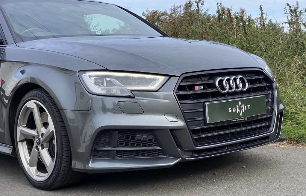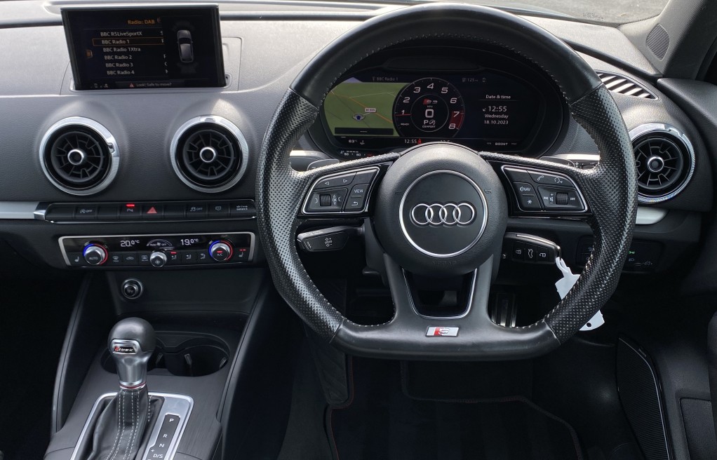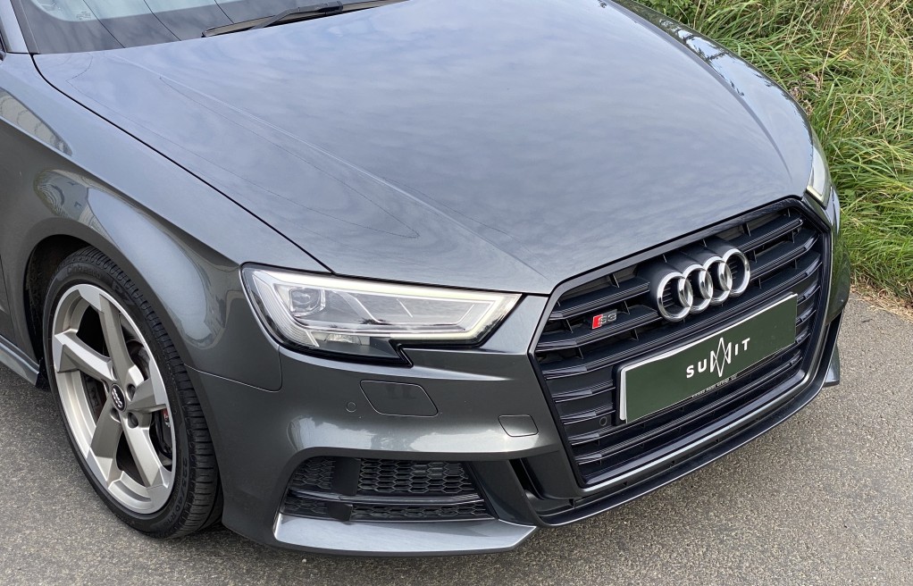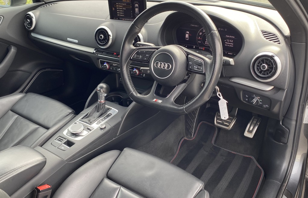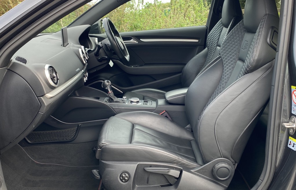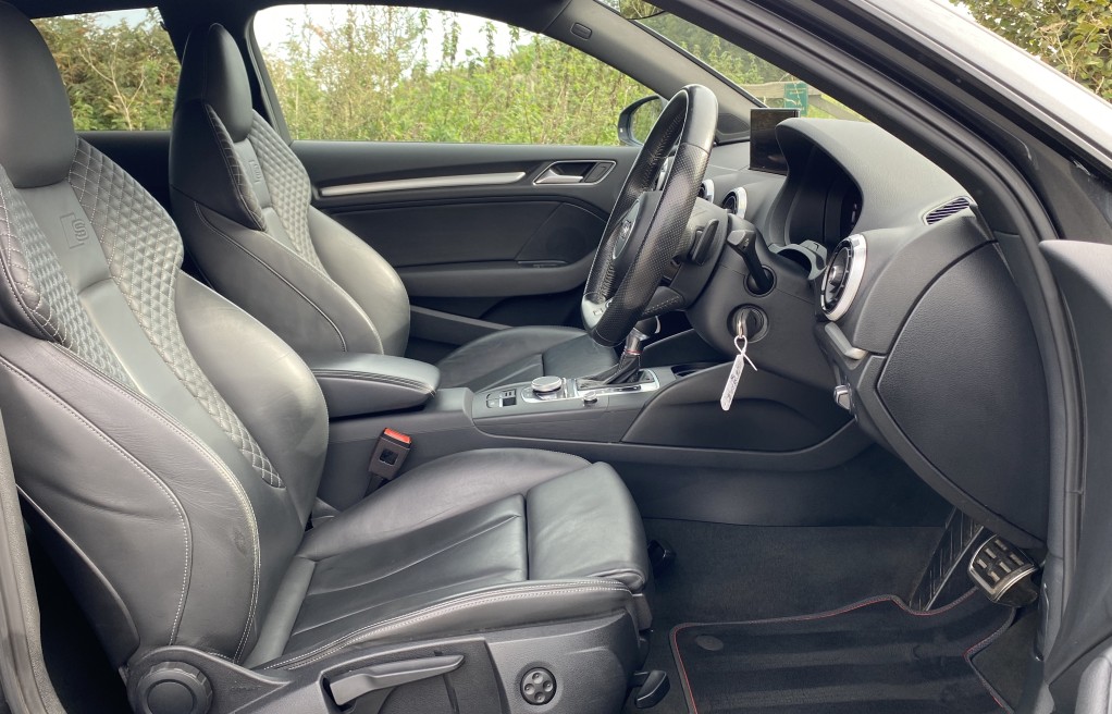 18in Alloy Wheels - 5-Arm Turbine Design in Magnesium Look - Diamond Cut Finish, 2 x USB Charging Ports and 1 x AUX-IN, 6-Airbag System with Knee Airbag for Driver, Aluminium Interior Elements, Anti Theft Locking Wheel Bolts, Anti-Theft Alarm, Audi Beam, Audi Connect Infotainment Services - 3 Month Trial, Audi Drive Select, Audi Smartphone Interface, Bang and Olufsen Sound System, Black Styling Package, Bluetooth Interface, CD Drive, Colour Drivers Information System - DIS, Cruise Control, DAB Digital Radio, Door Mirrors - Black Housing, Door Mirrors - Electrically Adjustable and Heated, Dual-Zone Electronic Climate Control, ESC - Electronic Stabilisation Control inc ABS - ASR and EDL, Electric Windows - Front, Electromechanical Parking Brake, Exhaust Tailpipe - Dual-Branch Oval Twin with Chrome Finish, First Aid Kit, Front Centre Armrest, Front and Rear Floor Mats, Headlights Washers, Heated Front Seats, ISOFIX Child Seat Mounting and Top Tether for Front Passenger and Outer Rear Seats, Illuminated Door Sill Trims with S Logo, Immobiliser, Inlays - Matt Brushed Aluminium, Instrument Dials with S3 Logo, LED Headlights with LED Rear Lights and Dynamic Rear Indicators, LED Interior Light Package, Light and Rain Sensor, Luggage Compartment - Lashing Points x4, MMI Navigation - SD Card Based, MMI Radio Plus with 7in Electrically Retractable Colour MMI Screen, Manual Front Seat Adjustment, Non-Smoking Package, Pedals in Stainless Steel, Platinum Grey S Grille with Chrome Plated Dual Struts and S3 Logo, Pollen Filter, Privacy Glass, Progressive Steering, Remote Central Locking with 2 Fold Away Keys, S Design Body Styling, S Sport Suspension, S3 Front Bumper, S3 Roof Spoiler, Seat Belt Monitoring, Seats - Split Folding Rear - 60-40, Space Saver Spare Wheel, Steering Wheel - 3-Spoke Leather-Multifunction-Flat Bottomed-Shift Paddles, Storage Compartments in the Door Side Trims-Centre Console-Under Drivers Seat, Storage Package, Tool Kit and Car Jack, Tyre Pressure Monitoring System, Voice Control, Warning Triangle