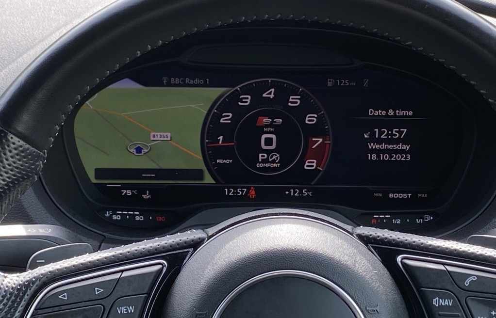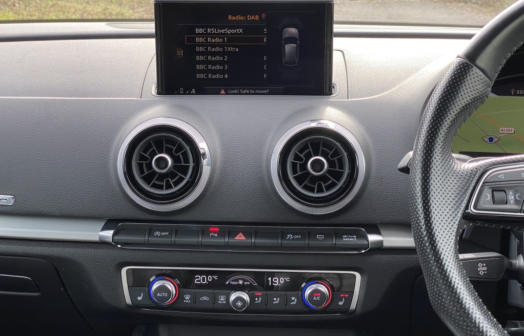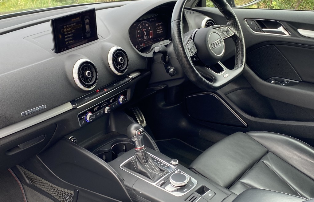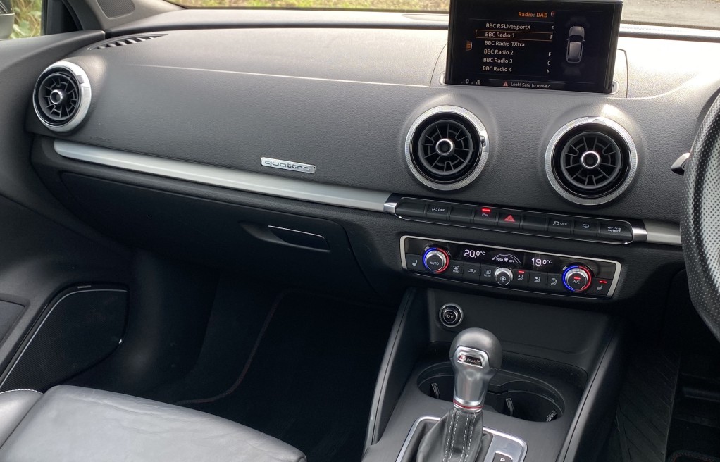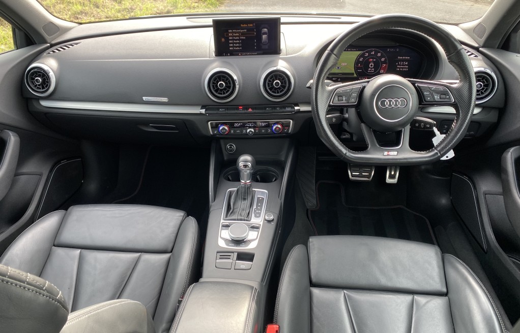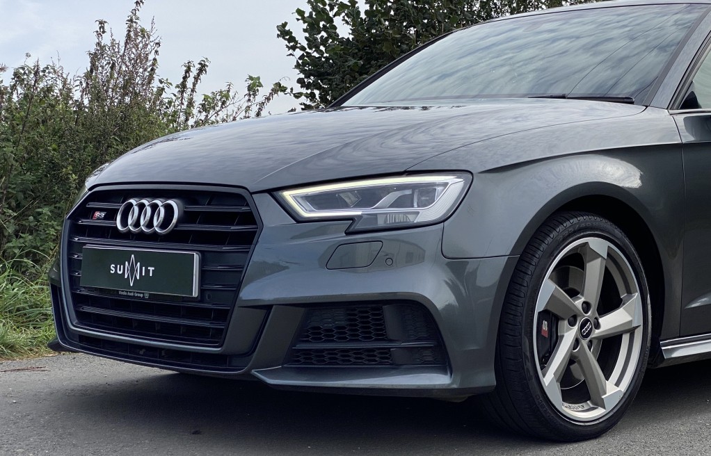18in Alloy Wheels - 5-Arm Turbine Design in Magnesium Look - Diamond Cut Finish, 2 x USB Charging Ports and 1 x AUX-IN, 6-Airbag System with Knee Airbag for Driver, Aluminium Interior Elements, Anti Theft Locking Wheel Bolts, Anti-Theft Alarm, Audi Beam, Audi Connect Infotainment Services - 3 Month Trial, Audi Drive Select, Audi Smartphone Interface, Bang and Olufsen Sound System, Black Styling Package, Bluetooth Interface, CD Drive, Colour Drivers Information System - DIS, Cruise Control, DAB Digital Radio, Door Mirrors - Black Housing, Door Mirrors - Electrically Adjustable and Heated, Dual-Zone Electronic Climate Control, ESC - Electronic Stabilisation Control inc ABS - ASR and EDL, Electric Windows - Front, Electromechanical Parking Brake, Exhaust Tailpipe - Dual-Branch Oval Twin with Chrome Finish, First Aid Kit, Front Centre Armrest, Front and Rear Floor Mats, Headlights Washers, Heated Front Seats, ISOFIX Child Seat Mounting and Top Tether for Front Passenger and Outer Rear Seats, Illuminated Door Sill Trims with S Logo, Immobiliser, Inlays - Matt Brushed Aluminium, Instrument Dials with S3 Logo, LED Headlights with LED Rear Lights and Dynamic Rear Indicators, LED Interior Light Package, Light and Rain Sensor, Luggage Compartment - Lashing Points x4, MMI Navigation - SD Card Based, MMI Radio Plus with 7in Electrically Retractable Colour MMI Screen, Manual Front Seat Adjustment, Non-Smoking Package, Pedals in Stainless Steel, Platinum Grey S Grille with Chrome Plated Dual Struts and S3 Logo, Pollen Filter, Privacy Glass, Progressive Steering, Remote Central Locking with 2 Fold Away Keys, S Design Body Styling, S Sport Suspension, S3 Front Bumper, S3 Roof Spoiler, Seat Belt Monitoring, Seats - Split Folding Rear - 60-40, Space Saver Spare Wheel, Steering Wheel - 3-Spoke Leather-Multifunction-Flat Bottomed-Shift Paddles, Storage Compartments in the Door Side Trims-Centre Console-Under Drivers Seat, Storage Package, Tool Kit and Car Jack, Tyre Pressure Monitoring System, Voice Control, Warning Triangle