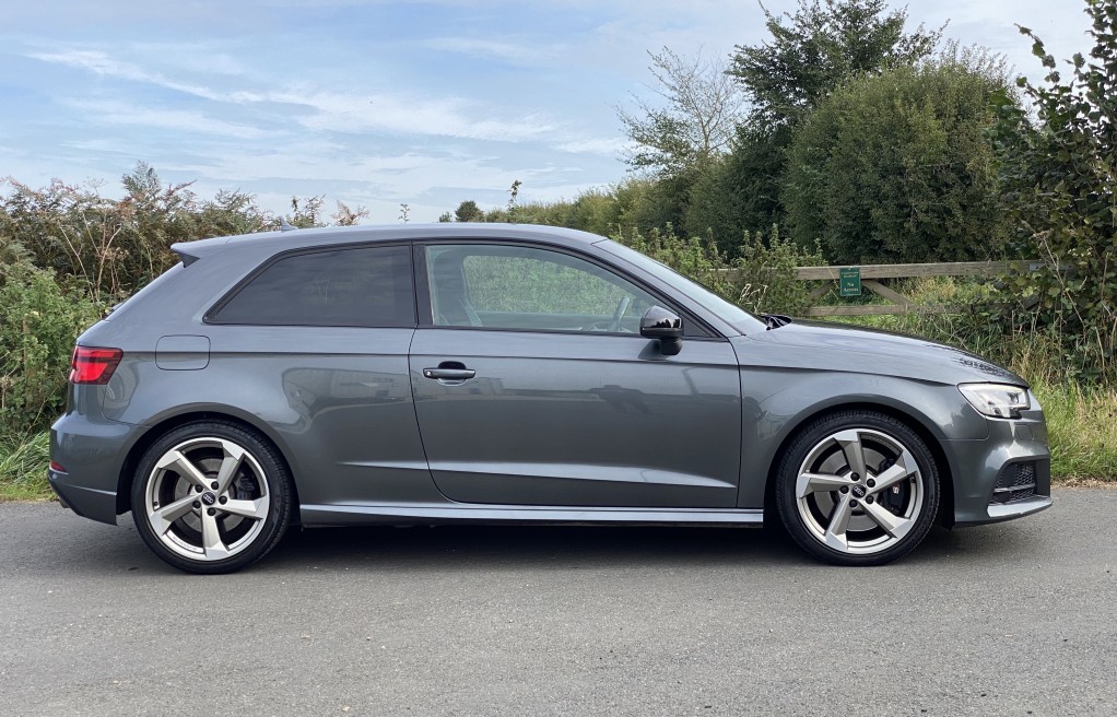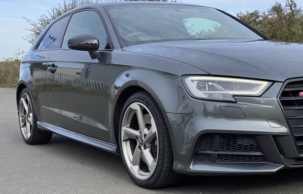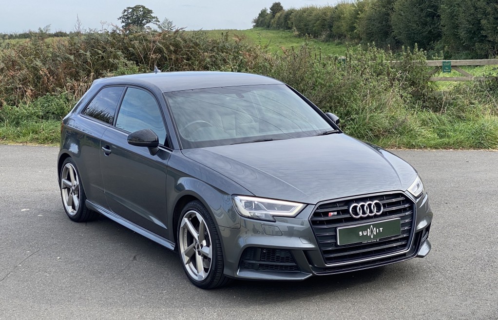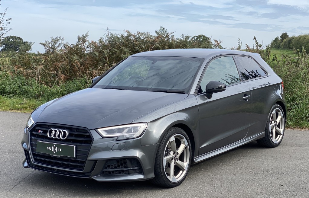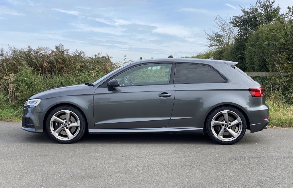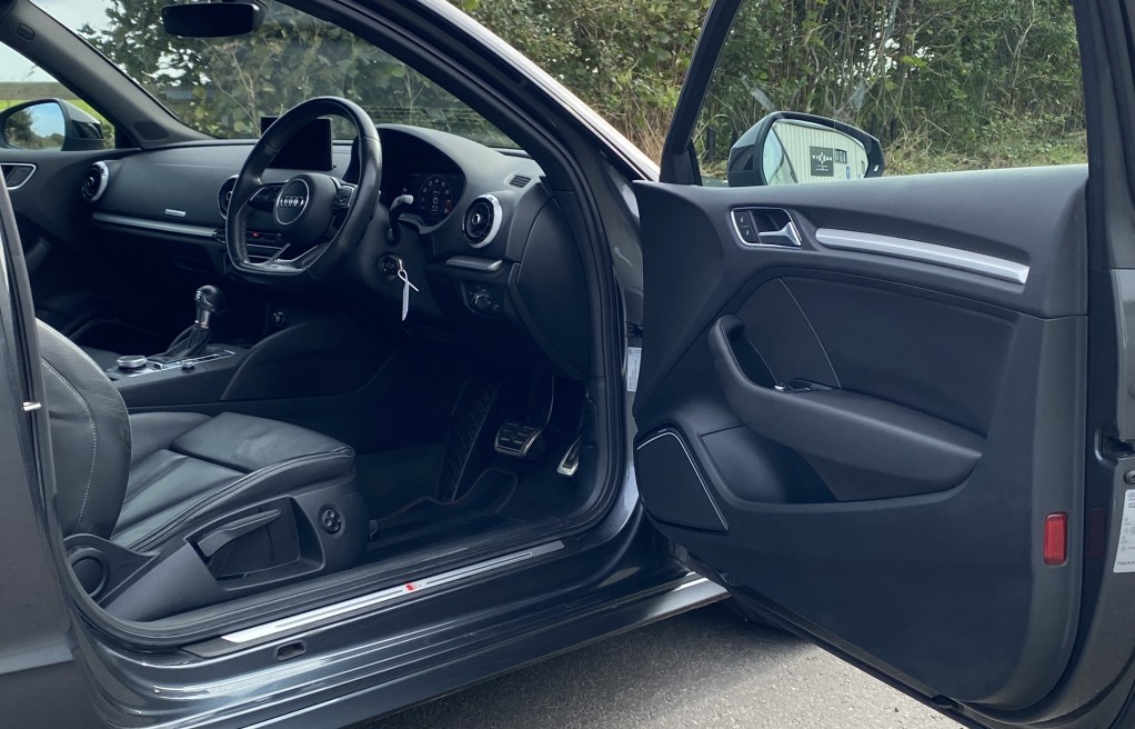 We are delighted to offer this exceptional, rare 3 door variant, Audi S3 Black Edition, finished in "Daytona Grey" exterior paint, complimented by Audi optional Super Sport seats, trimmed in full black leather, with contrast grey stitching. On top of being a "top of the range" Black edition model, this vehicle has an impressive list of optional extras, some of which include... Technology Package, Audi Super Sports seats with contrast grey stitching, Audi Virtual cockpit and Audi parking package to mention just a few (please see full specification below). In addition to the large factory specification, it also comes with 2 keys, the personal registration number (S300SKN), and full service history, the service history entries are as follows....