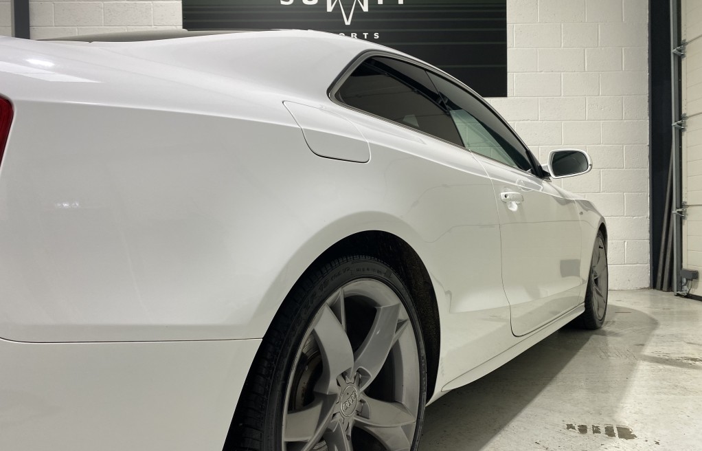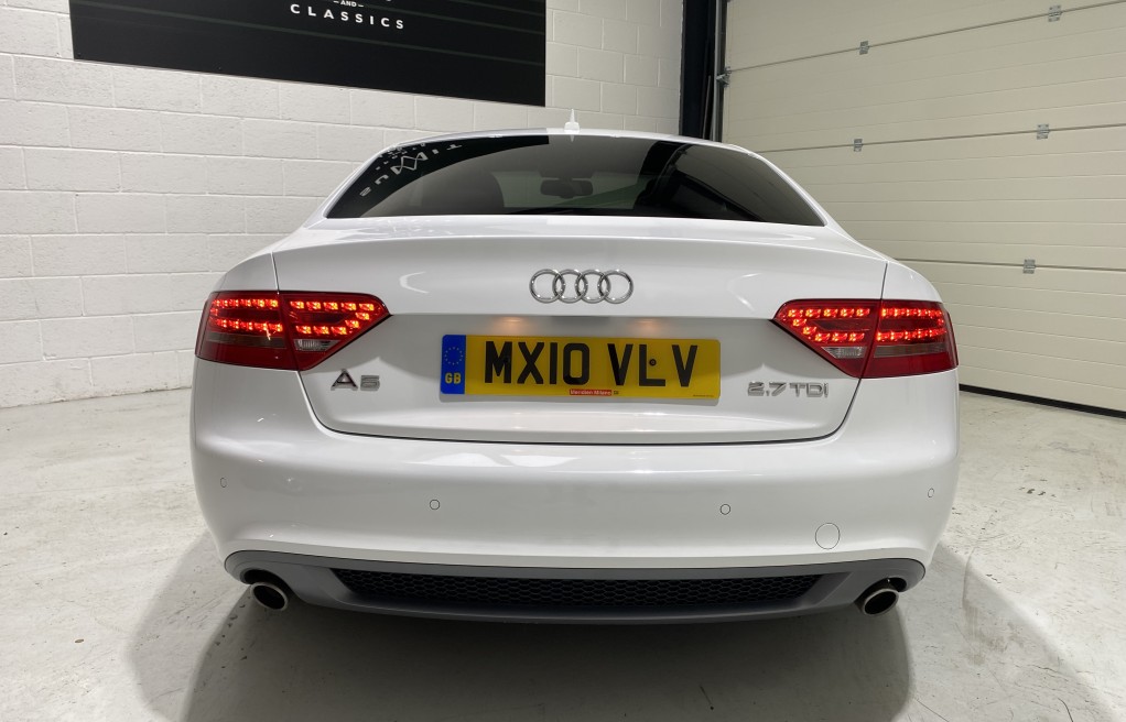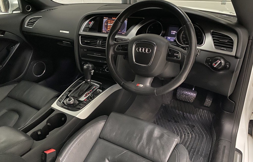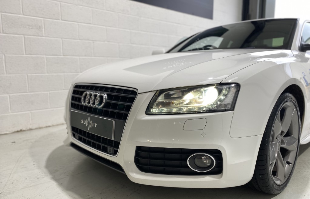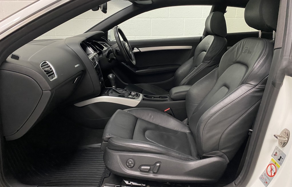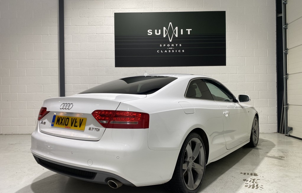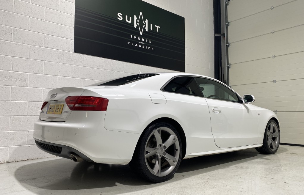 We are delighted to offer this superb, Audi A5 2.7 TDi Sline coupe finished in "Ibis White" metallic paint, with full black leather interior and heated seats. This vehicle comes with an excellent specification as standard, (please see full specification list below) however In addition, it comes with nearly every optional extra! Available. Some of these extras include, Panoramic sunroof, Bang and Olufsen HiFi speaker system, full black leather interior, Technology package, Satellite navigation, Xenon headlights, Black stying package, Bluetooth hands free, DAB radio, Electric seats with lumbar support, Cruise control, and front and rear parking sensors to mention just a few!