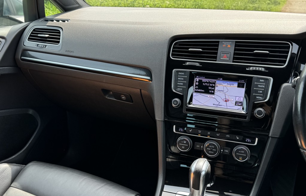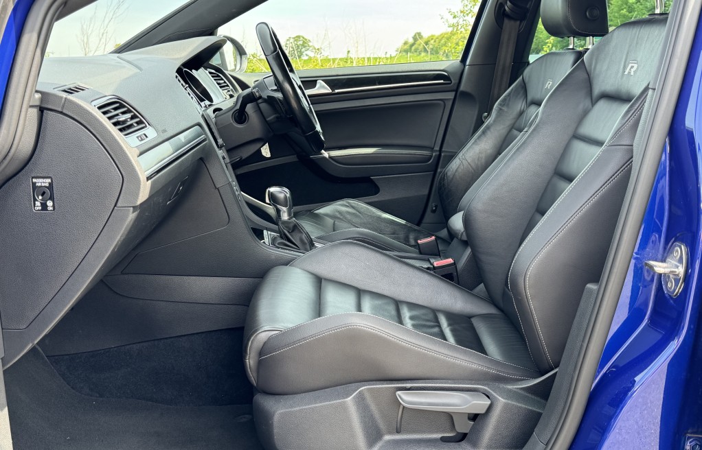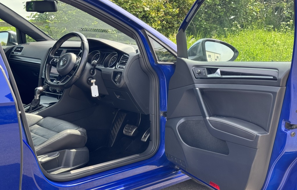We are delighted to offer this excellent 5dr Golf R, finished in "Lapiz Blue Metallic" exterior paint, with Full black leather interior. Being an R Variant, this vehicle has an impressive list of factory equipment. However, In addition to the superb standard specification, this vehicle has some very sought after optional extras, some of which include... ACC (Adaptive Chassis control), DCC (Dynamic Chassis Control), 18" Pretoria Style Alloy wheels (Grey), Vienna Black Leather, Heated front seats, Rear tinted glass and Satellite navigation to mention just a few (please see full specification below). In addition to the large factory specification, it also comes with 2 keys, and full service history, the service history entries are as follows: