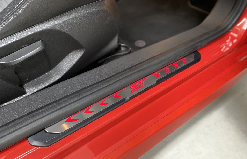 Standard Features - Accessory Power Point (12V) - Front, Alloy Wheels - Unique 17in ST with Locking Wheel Nuts, Anti-Lock Brakes (ABS) and Emergency Brake Assist (EBA), Auto. Headlights/Rain Sen.Wip./Auto Dimm.Rear View, Bluetooth Hands Free Phone, Body Colour Bumpers, Centre Console with Trinket Tray, Centre Rear Seat Belt, Cruise Control, DAB Radio, Drivers Airbag, Drivers Knee Airbag, Eight Speakers, Electric Power-Assisted Steering (EPAS), Electrically - Operated Front Windows with One Touch Opening and Closing, Electrically - Operated/Heated Door Mirrors with Side Indicators, Electronic Automatic Temperature Control (EATC), Electronic Brake Force Distribution (EBD), Electronic Stability Programme (ESP), Engine Immobiliser, Floor Mats Front and Rear, Ford Power Starter Button, Ford SYNC with Emergency Assistance, Front Centre Armrest, Front Fog Lights with Black Bezel Rings, Front Passengers Airbag with Airbag Deactivation, Front Seat Belts with Pre-Tensioners, Front Side Impact Airbags, Front and Rear Curtain Airbags, Head Restraints Front Height Adjustable/Rear, Heated Front Seats, High - Mounted Rear Brake Light, Hill Start Assist, LED Day Running Lights, Large Rear Spoiler, Leather Trimmed Gearshift with Red Stitching, Leather Trimmed ST Steering Wheel, MyKey, Quickclear Heated Windscreen, Rear Privacy Glass, Recaro Sports Front Seats, Remote Audio Controls, Remote Central Locking, ST Convenience Pack, ST Suspension with 15mm Lowered Ride Height, Sony Navigation System with DAB and Ford Sync, Sony Radio/CD, MP3 Compatible, Steering Wheel Column - Rake - and Reach - Adjustable, Tailgate Wash/Wipe, Thatcham Category 1 Alarm, Tinted Glass, Trip Computer, Two Cup Holders, Tyre Mobility Kit, Tyre Pressure Monitoring System (TPMS), USB Connectivity, Upholstery - Partial Leather Trim, Voice Control.