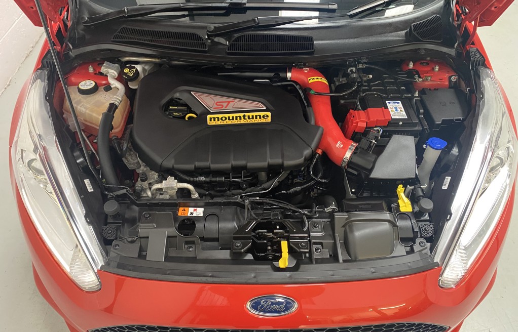 We are delighted to offer this excellent. Mountune 215bhp Ford Fiesta ST-3. This excellent vehicle comes with… Ford warranted Mountune remap to 215bhp, Mountune Induction kit, Mountune stainless steel back box, Heated Recaro seats, Sat Nav, Bluetooth hands free and keyless entry to mention a few (see the full list of specification below).