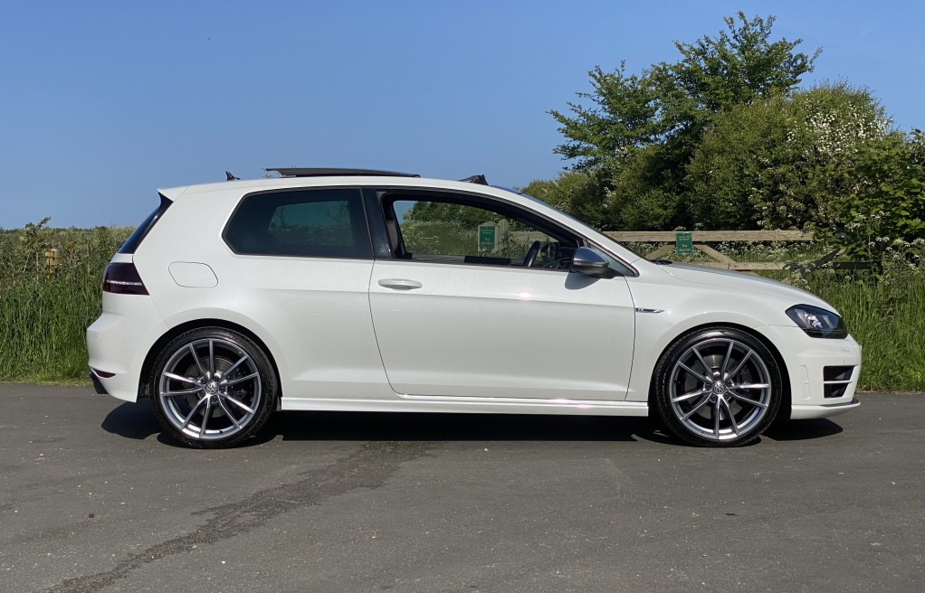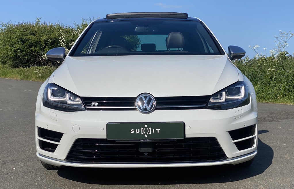 We are delighted to offer this exceptional, Volkswagen Golf R DSG, finished "Oryx White" exterior pearlescent paint, with the factory optional, full black leather interior. Furthermore, this vehicle has an incredible list of optional extras, some of these include: The Panoramic glass sunroof, Dynamic chassis control, Discover Navigation package, High beam Assist, Keyless Entry, 19" Pretoria alloy wheels, Winter package with heated leather seats, front and rear parking sensors and darkened rear glass windows to mention just a few (please see full specification list below). In addition to the excellent specification, this vehicle has 2 keys and finally It comes with Volkswagen main dealer service history. The service history entries are as follows.....