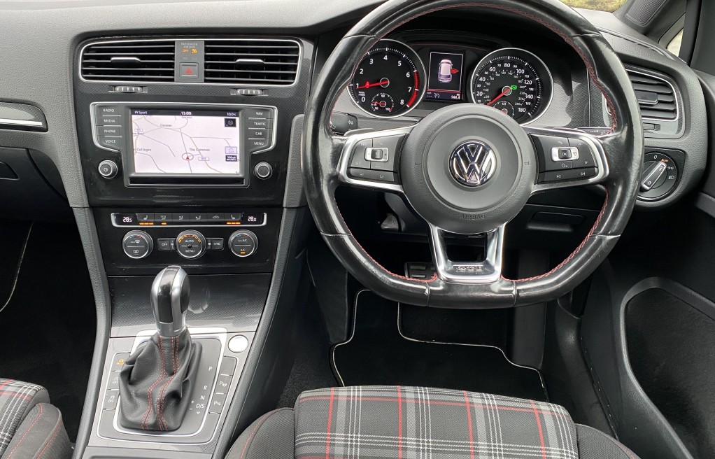 12V Socket, 12V Socket - Luggage Compartment, 18in Alloy Wheels - Austin, 2 Zone Electronic Climate Control with Automatic Air Recirculation, ABS - Anti-Lock Braking System, ASR - Anti Slip Regulation, Air Vent Surrounds - Chrome Effect, Airbags - Curtain Front, Airbags - Curtain Rear, Airbags - Driver, Airbags - Drivers Knee, Airbags - Front Passenger, Airbags - Front Passenger with Deactivation Switch, Airbags - Front Seat Side Impact, Alarm with Interior Protection, Ambient Lighting - Red, Ambient Lighting Pack, Anti-Theft Wheel Bolts, Anti-Tramp Function for ESP, Armrest - Front Centre with Storage Compartment, Automatic Dimming Rear View Mirror, Automatic Post-Collision Braking System, Bluetooth Audio Connection, Bluetooth Telephone Preparation, Body Coloured Bumpers, Body Coloured Door Handles, Body-Coloured Door Mirrors with Integrated Indicators, Brake Calipers - Red with GTI Logo, Brake Pad Wear Indicator, Branded Points of Interest for Sat Nav, Bumpers - Unique GTi, Car Information Display, Car-Net Guide and Inform - 3 Year Subscription, Carpet - Black, Carpet Mats - Front and Rear, Central Locking - Remote with 2 Remote Keys, Centre Console - Cyclone Decorative Inserts, Child Locks in Rear Doors, Chrome Plated Electric Mirror Adjustment Switch Surround, Chrome Plated Electric Window Button Surrounds, Chrome Trimmed Front Air Intake Grille Surround, Chrome-Plated Light Switch Surround, Colour Touch Screen - 6.5in, Composition Media System, Convenience Pack, Cruise Control - Adaptive, Cup Holders - Front x2, Cup Holders - Rear Armrest x2, DAB - Digital Radio Reception, Dashboard - Cyclone Decorative Inserts, Daytime Running Lights - LED, Differential Lock - Electronic - XDSPlus, Discover Navigation Touch-Screen Navigation Radio System, Door Mirrors - Electrically Adjustable-Heated and Folding, Door Mirrors - Puddle Lights, Door Mirrors - Reverse Activated Kerb View Adjustment on Passengers, Door Panels - Cyclone Decorative Inserts, Door Sill Protectors - Illuminated, Driver Alert System, Driver Profile Selection, Dust and Pollen Filter, Dynamic Curve Lighting, ESP - Electronic Stability Programme, Electric Windows - Front and Rear, Electronic Engine Immobiliser, Electronic Parking Brake with Auto Hold Function, European Mapping Data, Exhaust Tailpipes - Chrome Left and right, Extended Sill Strips - Flared, First-Aid Kit and Warning Triangle - Holder Only, Footwell Illumination - Front x2, Front Air Intake - Black Honeycomb, Front Assist including City Emergency Braking, Front Fog Lights - LED, Front Seat Back Storage Pockets, GTI Exterior Badge, GTI Interior Badge, Gas Discharge - Bi-Xenon Dipped and Main Beam Headlights with LED Daytime Running Lights, Gear Knob Gaiter - GTi Logo and Red Stitching, Gear Shift Indicator, Glovebox - Illuminated - Cooled - Lockable, Grab Handles - Front x2 Rear x2 with Coat Hooks, HBA - Hydraulic Brake Assist, Head Restraints - Front Whiplash Optimised, Headlight Washer System, Headlights - Automatic Range Adjustment, Headlights - Coming-Leaving Home Function, Headlights - Dusk Sensor - Automatic Driving Lights, Headlights - Red Stripe for Bi-Xenon, Heated Front Seats, Heated Rear Windscreen, Heated Windscreen Washer Jets, Height and Reach Adjustable Steering Column, Height-Adjustable Front Three-Point Seat Belts with Tensioners, High Level 3rd Brake Light - LED, ISOFIX Child Seat Preparation for 2 Rear Seats, Instrument Lighting - White Adjustable Panel Illumination, Interior Lighting Delay, Keyless Entry - with Start-Stop Button, Keys - Folding x 2, LED Rear Number Plate Lights, Leather Gaiter on Gear Lever, Leather Trimmed Gear Knob, Leather Trimmed Three-Spoke Steering Wheel and Gear Knob, Light Strips Below Trim in Front Doors, Lights in Front Door Armrests, Lights on Warning Buzzer, Load Lashing Points x4 in Luggage Compartment, Load-Through Provision, Load-through Provision Converts to Table Function, Low Washer Fluid Warning Light, Luggage Compartment - Hooks, Luggage Compartment Cover, Luggage Compartment Light, Luggage Compartment Storage Area on Right, MDI - Multi Device Interface with USB - iPod Connection Cables, Map View - 2D and 3D, Mirror Pack, Multifunction Computer - Colour, Optical Parking Display via Vehicles Audio System, Parking Sensors - Front and Rear, Parking Sensors - Rear, Pedals - Stainless Steel, Pre-Crash Preventive Occupant Protection, Progressive Steering, Radar Sensor Controlled Distance Monitoring System, Radiator Grille - Black Honeycomb Structure and Red Stripe, Radio Aerial Integrated into Rear Windscreen, Rain Sensor, Reading Lights Front x2 and Rear x2 - LED, Rear Centre Armrest, Rear Diffuser - Black, Rear Lights Incorporating LED Technology, Reflectors in Doors, Roof Lining - Black, Route Options for Sat Nav - Fast-Short-Eco, SD Card Reader, SMS Functionality - Read - Compose and Send SMS Messages Using Touch Screen Display - Android Compatible Smartphones Only, Seats - Front Lumbar Support, Seats - Front Sports, Seats - Height Adjustment - Front, Service Interval Display, Simultaneous Pairing of 2 Compatible Mobile Devices, Single CD Player, Smoked Rear Light Clusters, Sound Output - 4x20 Watt, Spare Wheel - Space Saver Steel, Speakers x8, Speed Limit Display, Speed Limiter, Split Folding Rear Backrests 60-40, Start-Stop Button, Static Cornering Function, Steering Wheel - Audio Controls, Steering Wheel - GTi Logo, Steering Wheel - Multifunction, Steering Wheel - Paddle Shift, Steering Wheel - Red Stitching, Storage - Cover for Area in Roof Console, Storage Compartment in Centre Console Covered, Storage Compartment in Front Doors, Storage Compartment in Rear Doors, Storage Compartment in Roof Console, Styling Pack for GTI, Sun Visors - Vanity Mirrors and Illuminated, Suspension - GTi Sports - Lowered by Approx 15mm, TMC Plus - Traffic Message Channel, Temperature Display - External, Think Blue - Trainer - Driver Tips - Journey Analysis, Three Rear Head Restraints, Tinted Glass - Heat Insulating Rear 65 Perc