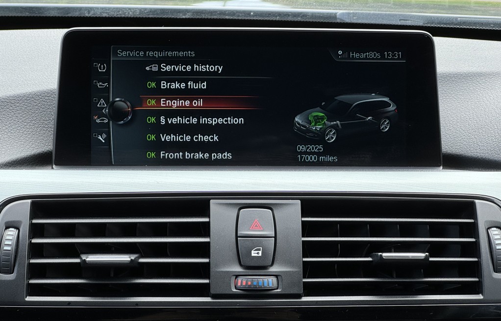 12V Power Socket - Centre Console, 12V Power Socket - Passenger Footwell, 18in Alloy Wheels - Light M Star Spoke - 400M, 40-20-40 Split Folding Rear Seats, 6.5in Colour Display Screen, ABS - Anti Lock Braking System, ASC - Automatic Stability Control, Active Carbon Microfilter, Air Conditioning - Automatic with Two-Zone Control, Airbags - Driver, Airbags - Front Side, Airbags - Head - Front and Rear, Airbags - Passenger, Airbags - Passenger Deactivation, Alarm System Thatcham 1 with Remote Control, Ambient Interior Lighting, Ambient Lighting - Switchable BMW Classic Orange - Cold White - LED, Amplifier - 100 Watts, Armrest - Dakota Leather - Black, Armrest - Front and Rear Integrated into Door Trim, Armrest - Front with Storage Compartment, Armrest - Rear Centre, Automatically Dimming Rear View Mirror, Auxiliary Input, BMW Apps Interface, BMW ConnectedDrive Online Services, BMW Emergency Call, BMW Navigation System, BMW Professional Radio - Single CD and MP3, Battery Safety Cut Off, Bluetooth - Audio Streaming - with Compatible Devices, Bluetooth Hands Free with USB Audio Interface, Bottle Holders - Front Door Storage Compartments, Brake Assist, Brake Drying, Brake Pad Wear Indicator, Brake Pre-Tensioning, Bumper System Front and Rear - Replaceable Deformation Elements for Impacts Up to 9mph, Bumpers - Body Colour, CBC - Cornering Brake Control, Central Locking - Remote, Centre Console - Estoril Blue Matt, Check Control Warning System, Child Proof Locking System - Rear Doors, Child Seat ISOFIX Attachment - Rear, Comfort Go Keyless Engine Start, Crash Sensor - Activating Central Locking-Hazard Warning Lights-Fuel Cut Off, Cruise Control with Brake Function, Cup Holders - Front x2, Cup Holders - Rear Armrest, DAB Digital Radio, DBC - Dynamic Brake Control, DSC - Dynamic Stability Control Plus, DTC - Dynamic Traction Control, Daytime Running Lights - LED, Door Handle Lighting, Door Handles - Body Colour, Door Mirrors - Body Coloured, Door Mirrors - Electric and Heated - Aspheric Drivers Side, Door Mirrors - Integrated Indicators, Door Panel - Leatherette - Black, Door Panels - Upper Arm Trim - Foam-Backed Foil Grained - Black, Door Pull Handle - Estoril Blue Matt, Door Sill Finishers - Front - M Designation, Drive Performance Control - ECO PRO - Comfort - Sport and Sport Plus, Dynamic Brake Lights, Electric Windows - Front and Rear with Open-Close Fingertip Control, Electronic Differential Lock, Electronic Engine Immobiliser, Exhaust Tailpipe - Chrome - Dual - Round - Left, Exit Lighting - Front, Extended Lighting, Exterior Trim - High-Gloss Shadowline, First Aid Kit, Floor Carpet - Velour - Anthracite, Floor Mats - Velour, Foldable Storage Floor with Compartment, Follow Me Home Headlight Function, Footwell Lights - Front and Rear, Four White LED Corona Rings, Front Air Inlet with High-Gloss Black Finisher, Front Reading Lights using LED Technology, Glove Compartment - Opener with Chrome Trim, Grab Handles - in Roof Lining x4, Handbrake and Gear Knob - Leather, Head Restraints - Front and Rear, Headlights - Automatic Activation, Headlights - Beam Throw Control, Headlining - Anthracite, Headrests - Dakota Leather - Black, Heat Protection Glazing with Green Tint, Heated Windscreen Washer Jets, High Level Third Brake Light, Hill Start Assistant, Illuminated Vanity Mirrors for Driver and Passenger, Incorrect Fuelling Protection System, Indicator Lenses - Clear, Instrument Panel - Estoril Blue Matt, Instrument Panel - Lower Section - Plastic Grained - Black, Instrument Panel - Upper Section - Plastic Grained - Black, Interior Trim - A-B Pillar - Lower Section - Plastic - Black, Interior Trim - A-B-C Pillar - Upper Section - Everest Grey, Interior Trim - Aluminium Hexagon with Estoril Blue Finisher, Kidney Grille - Chrome Extra-Wide High-Gloss Black Vertical Slats, LED Fog Lights - Front, LED Front Indicators, LED Headlights, LED Tailights, Lashing Eyes in Luggage Compartment x4, Lights-on Audio Warning, Luggage Compartment - Electric Unlocking via the Keys Remote Control, Luggage Compartment - Retaining Straps, Luggage Compartment - Storage Nets, Luggage Compartment Light - LED, Luggage Compartment Lining - Carpet - Anthracite, M Aerodynamic Bodystyling, M Sport Instrument Cluster, Media Package - BMW Business, Model Designation, Multifunction Controls for Steering Wheel, Non Smokers Package, OBC - On-Board Computer, Oil Sensor For Level and Grade - Warning by Check Control System, Optimum Shift Indicator, PDC - Park Distance Control - Front and Rear, PDC - Park Distance Control - Rear, Personal Profile, Rain Sensor, Rear Fog Light - LED, Rear Interior Light - Centre with Reading Lights using LED Technology, Remote Control with Integrated Key with Insert in Blue, Roll Cover Casing - Plastic Film - Black, Roller Shutter, Roof Mouldings - Body Colour, Run Flat Tyres, Seat Belt Security Check for Driver, Seat Belts - Fabric Weave - Black, Seats - Front - Manual Height Adjustment, Seats - Front Backrest - Plastic - Black, Servotronic Steering, Shark Fin Aerial, Side Exterior M Designation Badges, Side Impact Protection, Speakers x6, Speed Limit Function, Sport Seats - Front, Steering Column with Manual Reach and Rake Adjustment, Steering Wheel - Leather - M Sport, Storage Compartment - Door Trim Panels - Front, Storage Compartment - Door Trim Panels - Rear, Storage Compartment - Rear Centre Console, Sun Visors with Vanity Mirrors and Ticket Holder, TMC - Traffic Information, TPMS - Tyre Pressure Monitoring System, Tailgate Operation - Powered, Tailgate Window - Independently Opening, Through-Loading System, Tool Kit Located in Luggage Compartment, Two Bag Hooks in Luggage Compartment, USB Audio Interface, Warning Triangle, Welcome Light, Windscreen Wipers - Two-Speed with Adjustable Intervals, iDrive Controller - 8 Favourite Buttons
