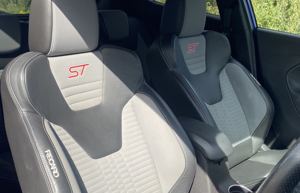 12V Power Socket - Front, 17in Alloy Wheels - ST, 4.2in TFT Display, 5in Colour Screen, ABS - Anti-lock Braking System, AUX Connection, Airbags - Curtain, Airbags - Driver Side Knee, Airbags - Front Passenger, Airbags - Head and Thorax, Airbags - Passenger Deactivation, Automatic Dimming Rear View Mirror, Automatic Headlights - Rain Sensing Wipers - Auto Dimming Rear View Mirror, Automatic Rain Sensing Wipers, Bluetooth Hands-free Phone, Body Colour Exterior Mirrors, Brake Warning Lights - Automatic Flashing of Brake Lights Under Heavy Braking, Bumpers - Front and Rear - Body Colour, Central Locking - Keyless Entry, Convenience Pack, Cruise Control, DDS - Deflation Detection System, Door Handles - Body Colour, Door Mirrors - Power-Foldable with Puddle Lights, Drivers Airbag, EATC - Electronic Automatic Temperature Control - Climate Control, EBA - Emergency Brake Assist, EBD - Electronic Brakeforce Distribution, ECOmode, EPAS - Electric Power Assisted Steering, ESP - Electronic Stability Programme, Electric Windows - Front with One Touch Lowering Drivers, Emergency Assistance, Emergency Brake Warning - Automatic Hazard Warning Lights, Engine Immobiliser, Ford Easy Fuel Capless Refuelling System with Misfuel Inhibitor, Ford Power Engine Start-Stop Button, Ford SYNC, Front Fog Lights, Front Upper Grille Insert - Black Mesh, Gear Knob - Leather, Gearshift Indicator Light, Head Restraints - Rear 2-Way Adjustment, Headlights - Automatic, Headlights - Follow Me Home, Headlights - Halogen Projector with Chrome Bezel, Heated Driver and Passenger Seats, Heated Front Windscreen, High-Mounted Rear Brake Light, Hill Start Assist, IPS - Intelligent Protection System, LED Ambient Courtesy Lighting, LED Daytime Running Lights, Loadspace Compartment Light, Loadspace Floor Carpet, Locking Wheel Nuts, Matrix Display, MyKey, Pollen Filter, Rake and Reach Steering Adjustable, Rear Privacy Glass, Removable Rear Parcel Shelf, ST Front Door Scuff Plates, ST Full Body Styling Kit, Seats - 60-40 Split Folding Back and Fixed Cushion, Seats - Drivers 4-Way Adjustment, Seats - Front Recaro Sports, Seats - ISOFIX Mounting Brackets for Child Seats, Side Skirts, Sony CD-Radio Player-MP3 Compatibility, Sony DAB Digital Radio, Sony Navigation System - DAB and Ford SYNC, Speakers - x8, Steering Wheel - Leather with Red Stitching, Steering Wheel - Multifunction, Stowage Pockets - Drivers Seatback, Suspension - Sports, Tailgate Handle - Body Colour, Thatcham Category 1 Alarm, Traction Control, Trip Computer, Tyre Inflator Kit, Tyre Pressure Monitoring System, USB Connection, Unique ST Floor Mats - Front and Rear, Unique ST Instrument Cluster Binnacle, Unique ST Rear Spoiler, Voice Control - Audio