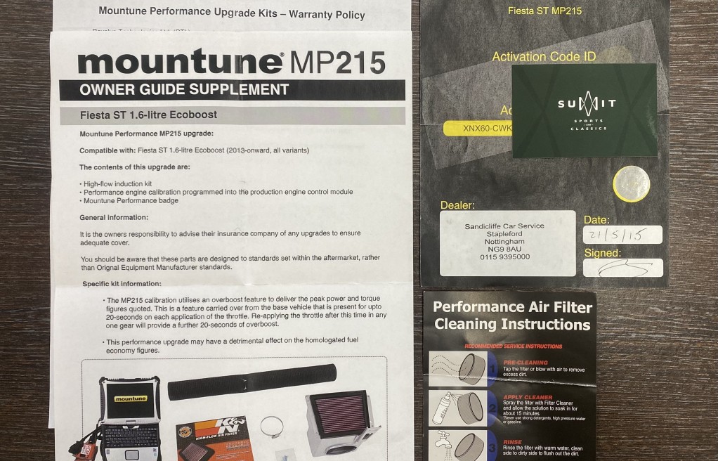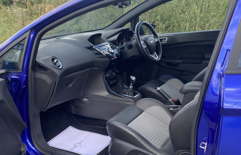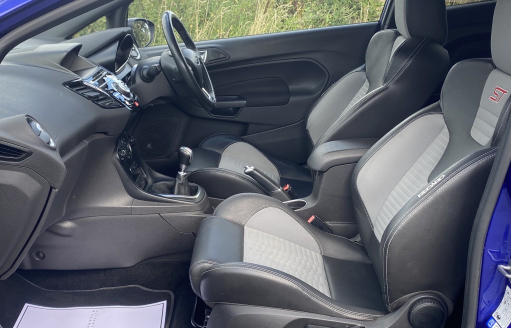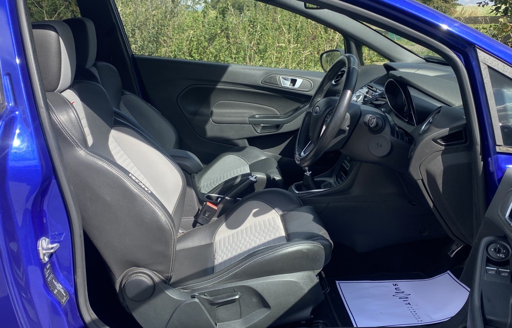 We are delighted to offer this excellent, St-3 fiesta, finished in "Spirit Blue" metallic paint, with black/grey part leather interior. Being an "ST-3" model, it comes with an excellent level of equipment as standard, however, this vehicle comes with the rare, yet extremely desirable, Ford approved "Mountune 215BHP" performance upgrade package. This package was fitted by Sandcliffe Ford to this vehicle as demonstrator model of theirs and comes with certification. This vehicle was then sold to the 2nd, and last owner in September 2015, making it a demonstrator plus one owner from new. In addition, this vehicle comes with features such as: Heated front seats, keyless entry and start, Electric folding exterior mirrors, rear parking sensors, Cruise control and Recaro seats to mention just a few (please see full specification list below).