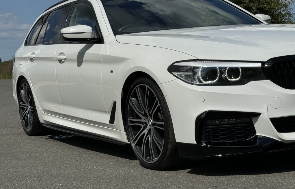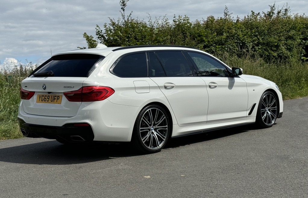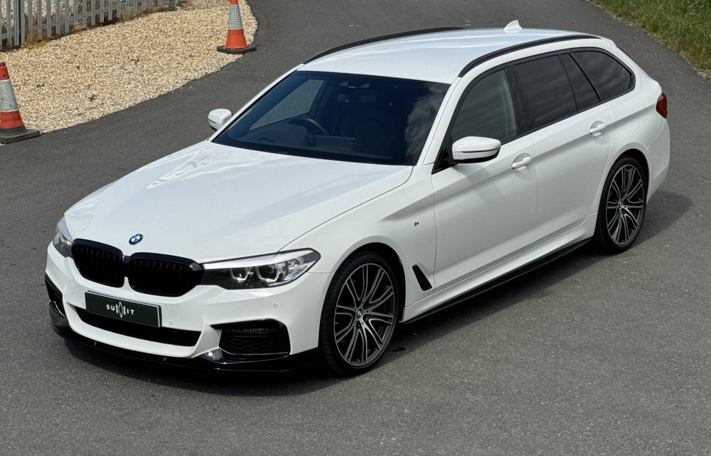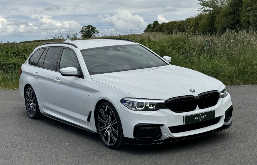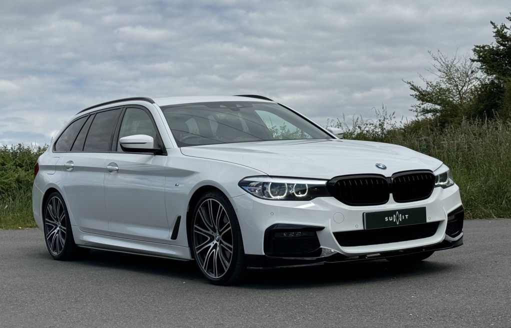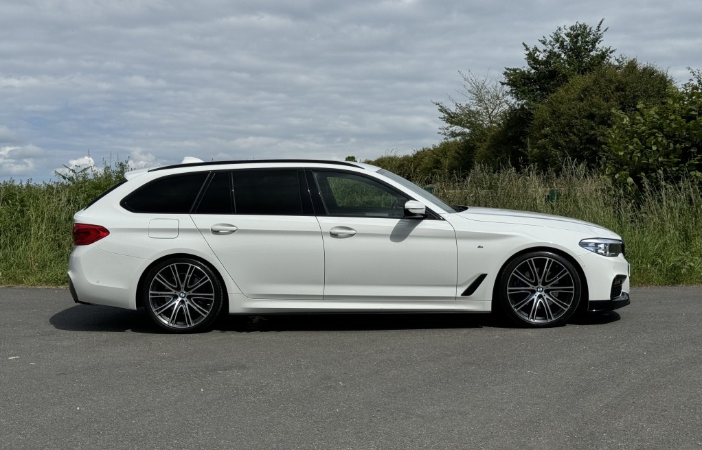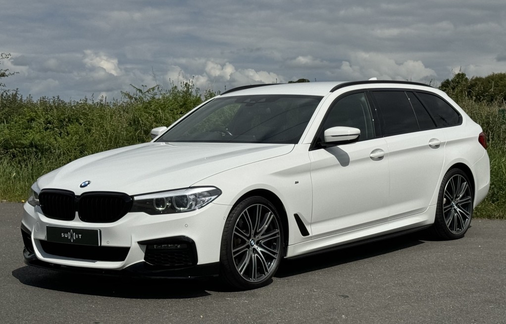 We are delighted to offer this incredibly well specced, BMW 530d Msport X-drive touring , finished in "Alpine White" exterior paint, with "Black Dakota " leather interior. As mentioned, this vehicle comes with an exceptional list of optional extras, some of which include: |Full Mperformance style body styling kit (Gloss black)| 20" BMW Individual light alloy V-spoke style 759 wheels| Technology Pack | Comfort pack | Msport Plus pack | Apple car play | Head Up Display | Comfort access | Reverse camera | Heated steering wheel | WiFi Preparation | Harmon Kardon HiFi System | and sun protection glass to mention just a few (please see full spec below).
