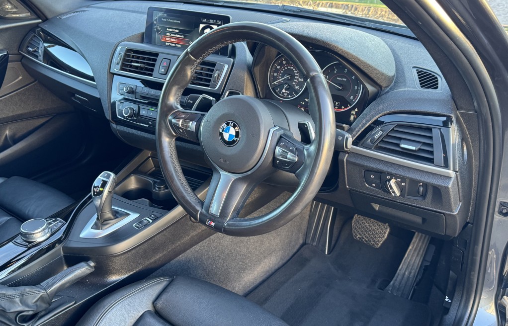 12V Power Socket - Centre Console, 12V Power Socket - Passenger Footwell, 18in Alloy Wheels - M Double Spoke in Ferric Grey - 461M, Active Differential Brake - ADB Sport - Electronic Differential Lock in DSC-Off Mode, Air Conditioning - Automatic - Single Zone, Airbags, Alarm System - Thatcham 1 with Remote Control and Engine Immobiliser, Ambient Lighting - Switchable BMW Classic Orange - Cold White - LED, Armrest - Front with Sliding Adjustment, BMW ConnectedDrive Online Services, BMW ConnectedDrive Services, BMW Emergency Call, BMW Navigation System, BMW Professional Radio - Single CD and MP3, BMW TeleServices, Battery Age Recognition Function, Battery Safety Cut Off, Bluetooth Hands Free with USB Audio Interface, Brake Pad Wear Indicator - Front and Rear, Bumper System Front and Rear - Replaceable Deformation Elements for Impacts Up to 9mph, Central Locking Switch - Doors - Fuel Filler Cap - Luggage Compartment, Check Control Warning System for Monitoring of Lights and Door-Luggage Compartment Open Warning, Child Proof Locking System - Rear Doors, Child Seat ISOFIX Attachment for the Two Outer Rear Seats, Condition Based Service, Crash Sensor - Activating Central Locking Release - Hazard Warning Lights - Battery Safety Cut Off - Interior Lighting, Cupholders Two with Sliding Cover and Inlay Mat, DAB Digital Radio, DSC - Dynamic Stability Control Plus, Direction Indicator - Side Repeaters - Integrated in Exterior Mirrors, Direction Indicator Lights - Clear Lenses, Door Sill Finishers - M Designation, Drive Performance Control - ECO PRO - Comfort - Sport - Sport Plus Modes, Dynamic Brake Lights, ECO PRO Mode, Electric Windows - Front and Rear with Open-Close Fingertip Control - Anti-Trap Facility and Comfort Closing Function, Exhaust Tailpipe - Chrome, Extended Storage, Exterior Mirrors Electrically Adjustable, Exterior Parts in Body Colour, Exterior Trim - High Gloss Shadowline, First Aid Kit and Warning Triangle, Floor Mats - Velour, Glove Compartment, Glovebox - Handle with Chrome Surround, Grab Handles - Integrated in Roof Linings - Four, Handbrake and Gear Knob - Leather, Head Restraints - Rear and Folding, Headlining - Anthracite, Heat Protection Glazing with Green Tint, High Level Third Brake Light, Incorrect Fuelling Protection System, Instrument Cluster - Sports with Red Highlight, Interior Lighting - Front Centre Over Interior Mirror and Rear Centre, Interior Trim - Aluminium Hexagon with Estoril Blue Finisher, Kidney Grille - Extra Wide High Gloss Black Vertical Slats, LED Fog Lights - Front, LED Headlights, Lashing Eyes in Luggage Compartment at Sill x2, Lights-On Warning by Audio Warning Signal When Ignition is Switched Off, Locking Wheel Bolts, Luggage Compartment - Light, Luggage Compartment Access via BMW Roundel, M Aerodynamic Bodystyling, M Logo Designation Chrome - Side, M Sport Multi-Function Leather Steering Wheel - Three-Spoke, Model Designation, Multifunction Controls for Steering Wheel, Non Smokers Package, OBC - On-Board Computer, Oil Temperature Display via On-Board Computer Shown in Central Screen in Instrument Cluster, Optimum Shift Indicator, Personal Profile, Power Steering - Electric, Rain Sensor with Automatic Headlight Activation, Real Time Traffic Information, Rear Fog Light - Offside, Rear Seat Headrests - Outer Headrests Folding, Rear Window Aerial, Remote Control Including Integrated Key - 2, Remote Control with Integrated Key with Insert in Blue, Reversing Light in Rear Cluster - Nearside, Run Flat Tyres, Seat Belt Security Check for Driver and Front Passenger, Seats - 60-40 Split Folding Rear, Servotronic Steering, Shark Fin, Side Armrests - Front and Rear Integrated into Door Trim, Side Impact Protection, Speed Limit Function, Sport Seats - Front, Start-Stop Button with Comfort Go Keyless Engine Start and Auto Start-Stop Deactivation Button, Steering-Wheel Column Adjustment - Manual, Storage Compartment - Rear Centre Console and in Door Trim - Front, Sun Visors with Vanity Mirrors and Ticket Holder, TPMS - Tyre Pressure Monitoring System, Three-Point Seat Belts - All Seats, Twin Horns, Tyres - Reduced Rolling Resistance, Visible VIN, Welcome Lighting - LED, Windscreen Wiper - Rear