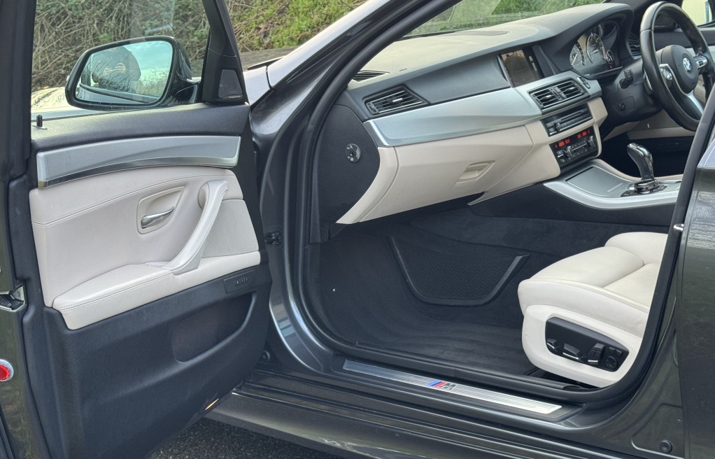 We are delighted to offer this superb BMW F11 530d Msport. This vehicle is finished in "BMW Mineral Grey" metallic paint, complimented with BMW Ivory White leather interior. This vehicle has an incredibly extensive list of extras! In fact, One of the highest specifications we have seen on a F11 BMW, totalling over £13,560 from NEW!! In addition, it comes with extensive Service history, all of which is with BMW or BMW specialists, 4 x near new condition BMW Star rated Bridgestone tyres, & 2 keys. The full service records can be seen at the end of the advert images. Very Finally, this car has been subject to our extensive 150 point Summit Safe health check, to ensure it meets our extremely high standards for mechanical condition, as well as our stringent cosmetic standards. Whilst every effort has been made to ensure the accuracy of the vehicle specification, errors can occur so please check with a member of the team to avoid disappointment.