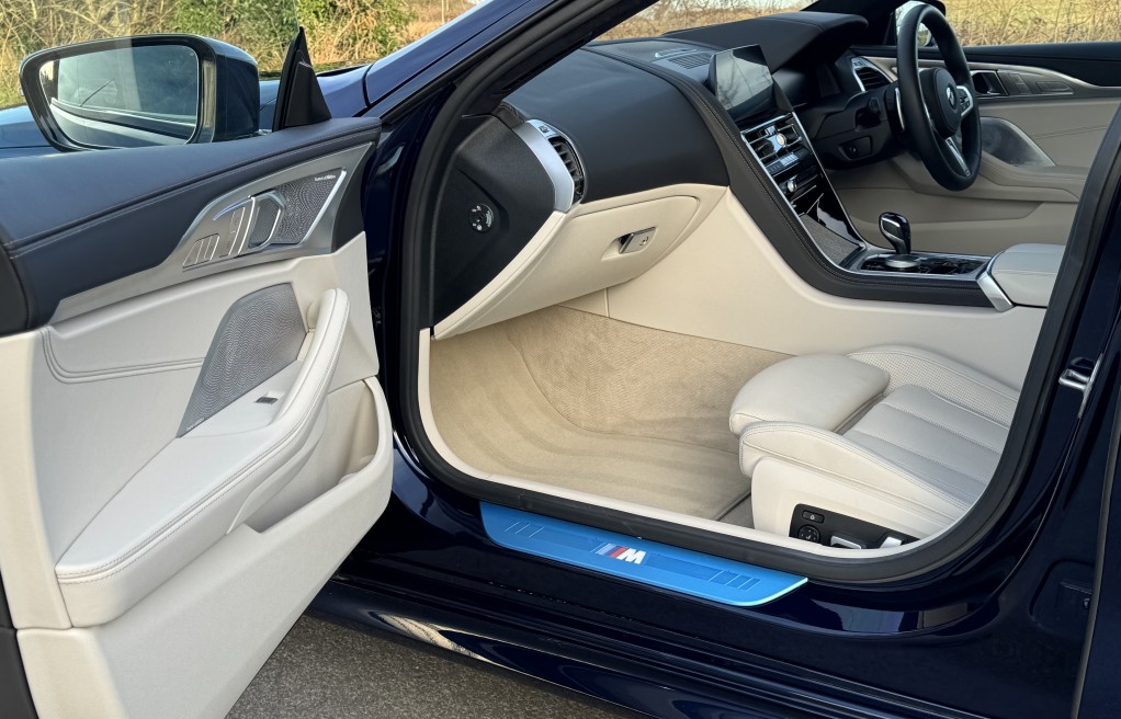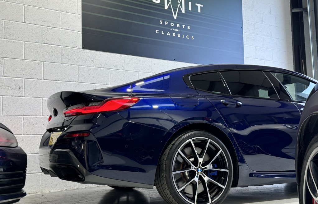 We are delighted to offer this exceptional, incredibly low mileage, BMW 840i Msport gran coupe, finished in "Tanzanite Blue II" metallic paint, complimented with " BMW Individual extended ivory white merino leather" interior.