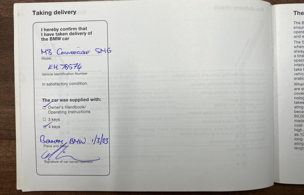 As you’d expect of a car with such an extensive history file, it’s clearly been very well looked after throughout its life. The paintwork is in exceptional condition, with no signs of any repair or previous accident damage. There is absolutely no rust on this vehicle other than very minor surface rust on the rear lower control arms which is consistent with its age and mileage. Both the soft top and hard top roof are in excellent overall condition and operate perfectly. The previous owner informed us that he had the wheels refurbished roughly 2 years ago due to some slight surface corrosion under the lacquer (common BMW fault even with modern BMWs). As you will see in the photos, the wheels have started to corrode again under the lacquer, it’s not severe but we do wish to make the potential buyer aware. As for the interior, again its in excellent general condition, and importantly it has not been smoked in. there is the odd minor age-related wear marks on the driver boulster, centre console and steering wheel, but certainly nothing untoward.