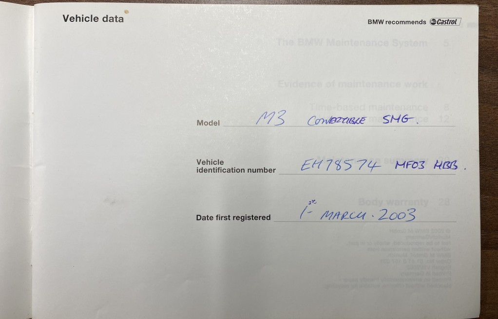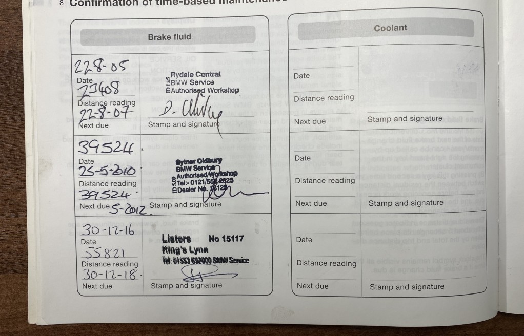 10. To be carried out by a BMW Main Dealer prior to sale completeion as well as a new MOT.