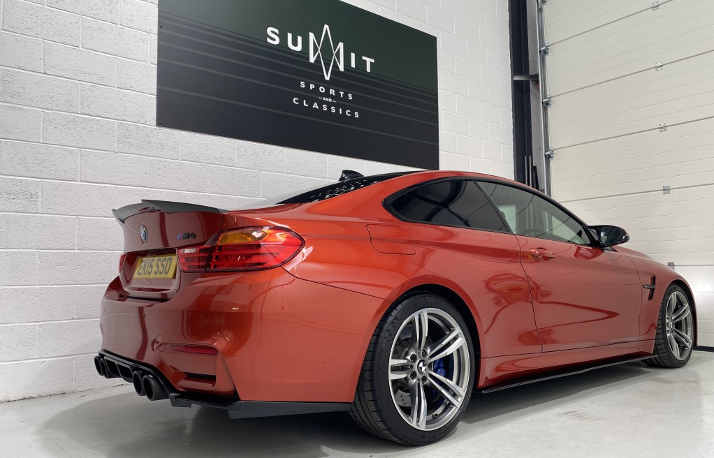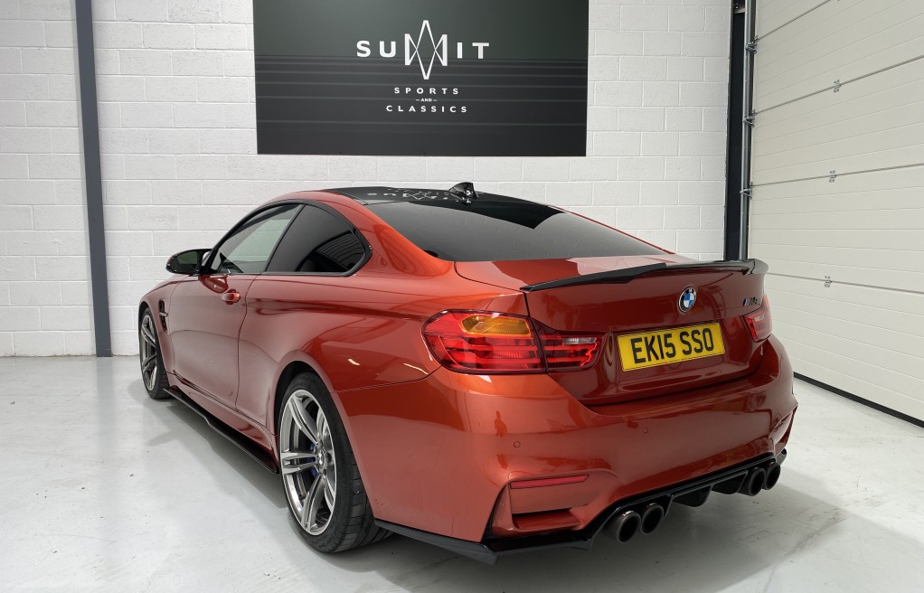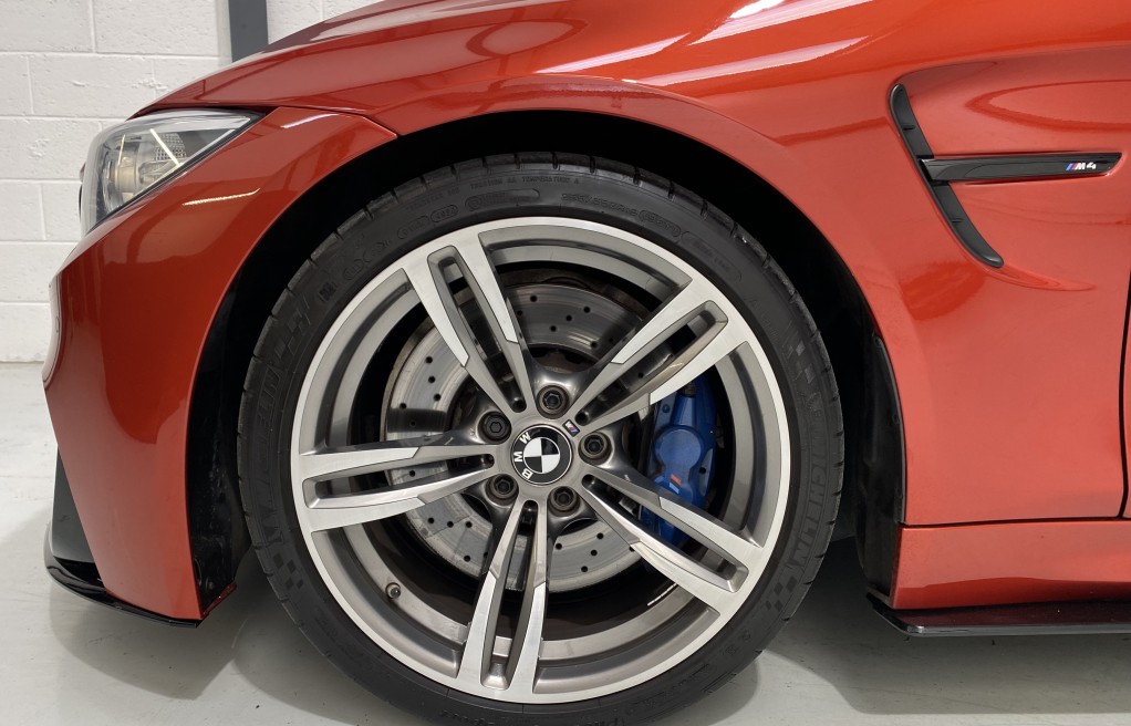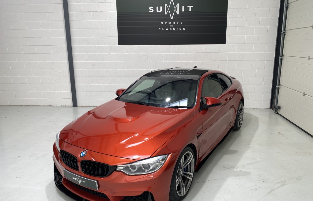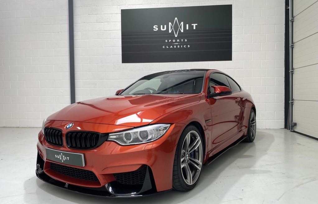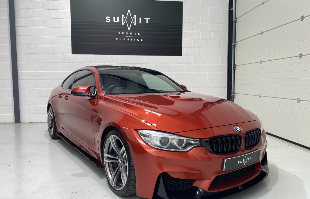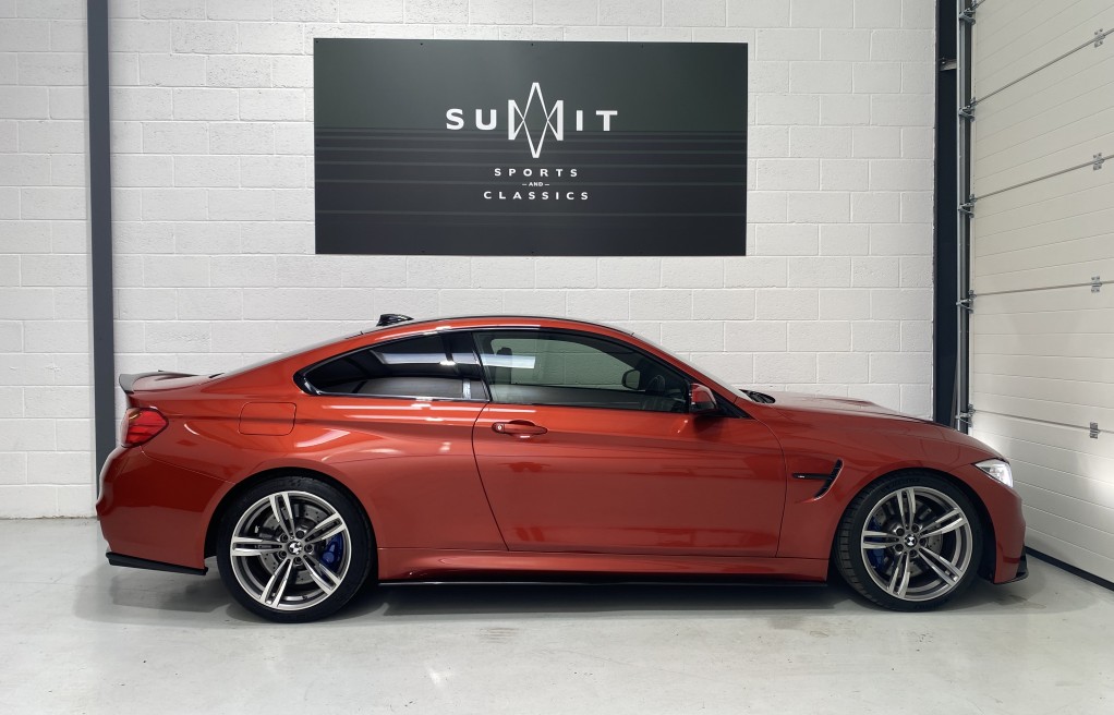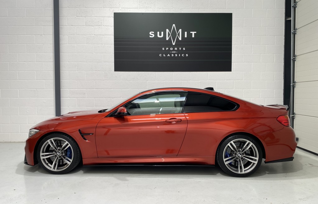 We are delighted to offer this exceptional, BMW M4 Coupe DCT, in the extremely desirable colour "Sakhir Orange". Finished inside with the Silverstone white/black two tone leather interior and the ever sought after, heated seats. In addition to the heated seats, this vehicle has a long list of optional extras including... Full MPerformance stye styling kit, Harmon Kardon Hi Fi Music System, Tinted rear windows, Carbon interior pack, Carbon boot lip spoiler, Black Kidney grills and dry carbon Akrapovic Exhaust tips. In addition to the excellent specification, this vehicle has 2 keys, Michelin Pilot sport 4 tyres, all of which are in great condition and in our opinion, are considered a MUST! to optimise the performance of the M4 model. In addition to the excellent specification this vehicle has previous full BMW and BMW specialist service history, details of which are as follows...