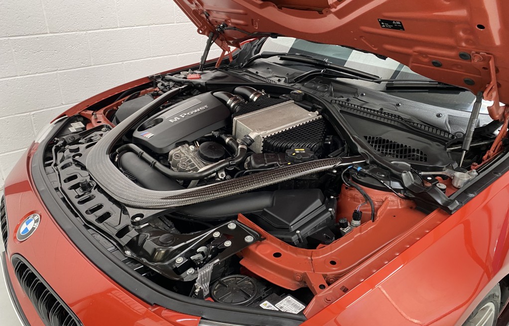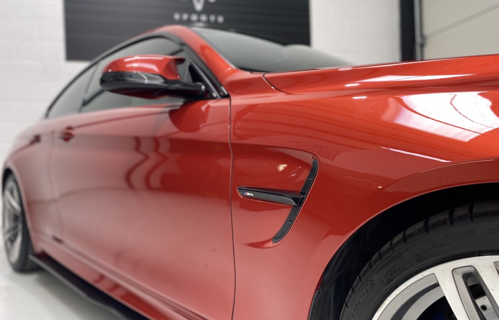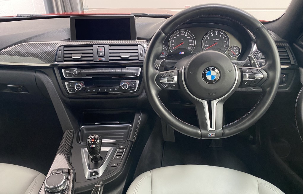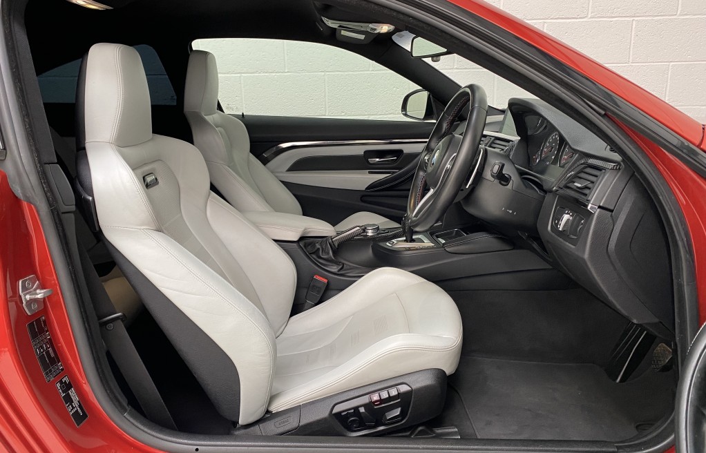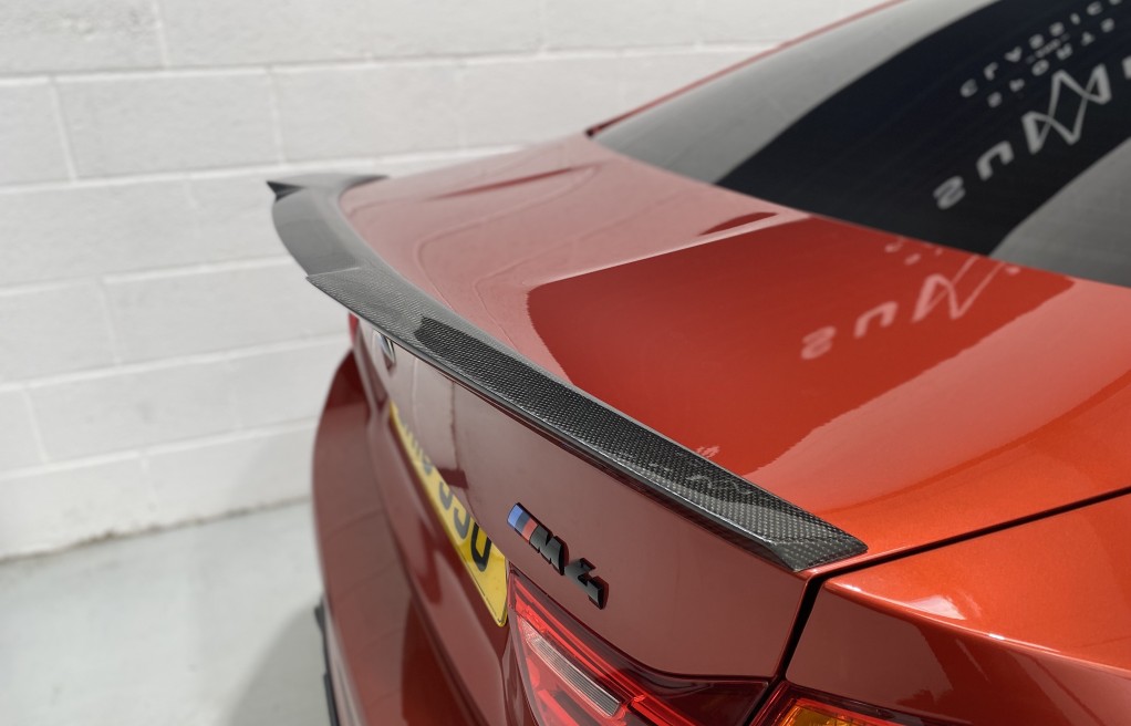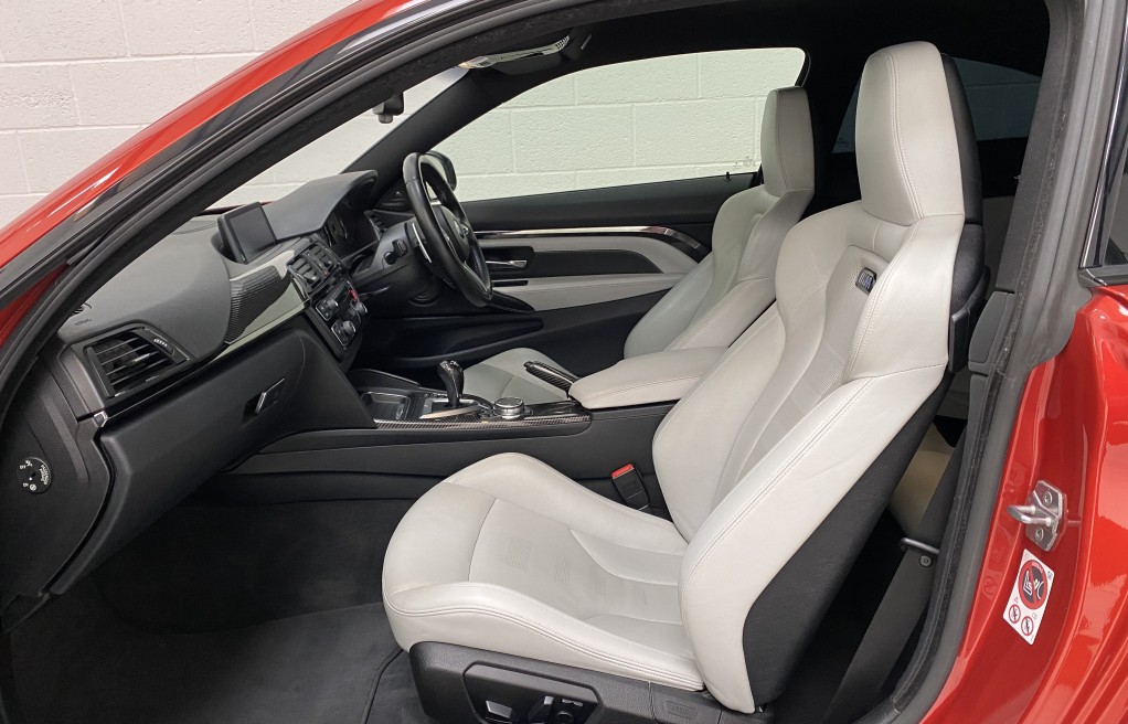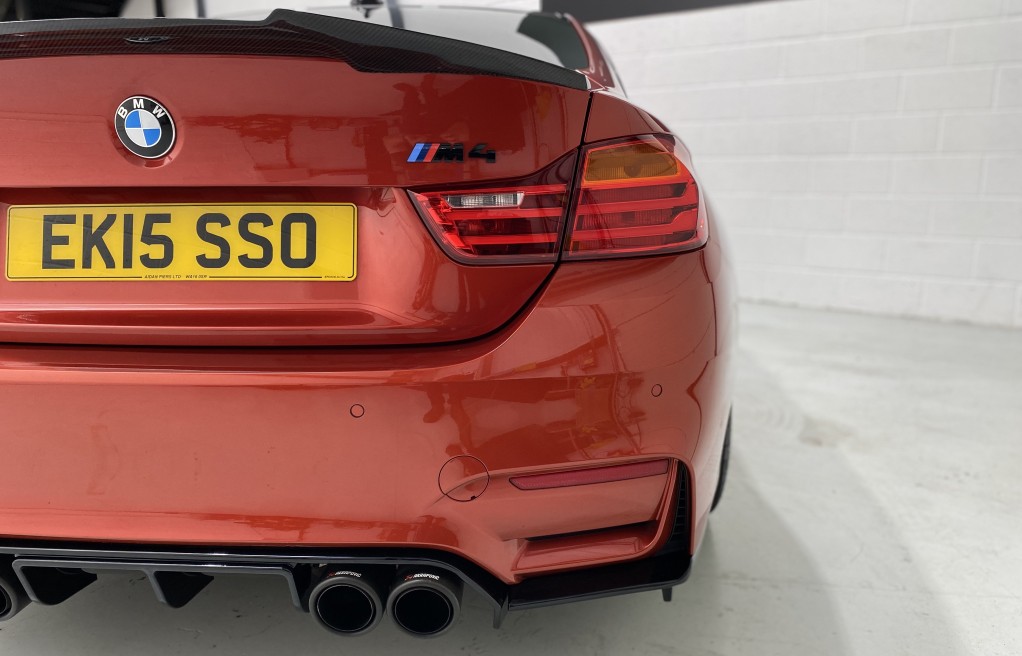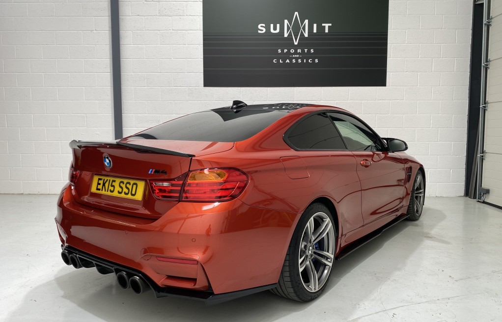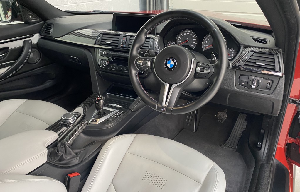 We are delighted to offer this exceptional, BMW M4 Coupe DCT, in the extremely desirable colour "Sakhir Orange". Finished inside with the Silverstone white/black two tone leather interior and the ever sought after, heated seats. In addition to the heated seats, this vehicle has a long list of optional extras including... Full MPerformance stye styling kit, Harmon Kardon Hi Fi Music System, Tinted rear windows, Carbon interior pack, Carbon boot lip spoiler, Black Kidney grills and dry carbon Akrapovic Exhaust tips. In addition to the excellent specification, this vehicle has 2 keys, Michelin Pilot sport 4 tyres, all of which are in great condition and in our opinion, are considered a MUST! to optimise the performance of the M4 model. In addition to the excellent specification this vehicle has previous full BMW and BMW specialist service history, details of which are as follows...