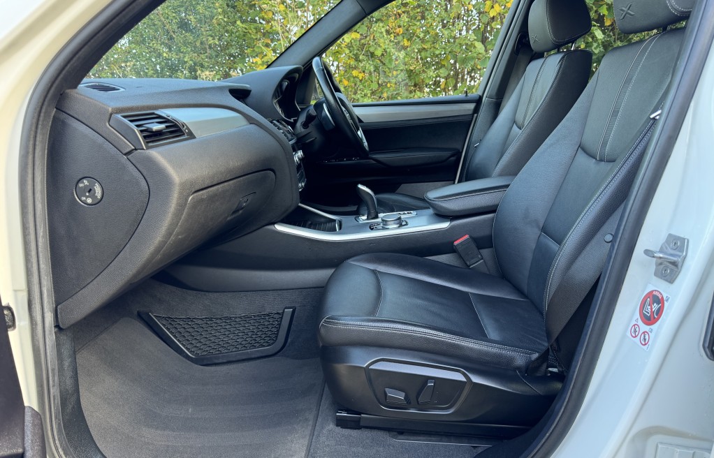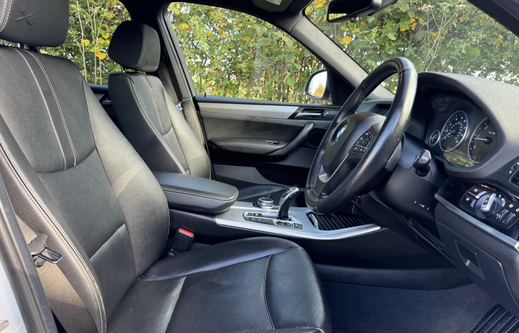 We are delighted to offer this exceptionally well looked after, BMW X3 30d Xline, finished in "Alpine White" exterior paint, with "Black Nevada " leather interior. This vehicle is in exceptional condition, and comes with a comprehensive list of optional extras, some of which include:|BMW Professional Satellite Navigation and media package (large screen and built in hard drive)| Electric memory front seats| Enhanced bluetooth with music streaming | Electric folding exterior mirrors| Reverse camera | Interior comfort pack |Heated seats | Cruise control and Front & Rear Parking sensors to mention just a few (please see full spec below).