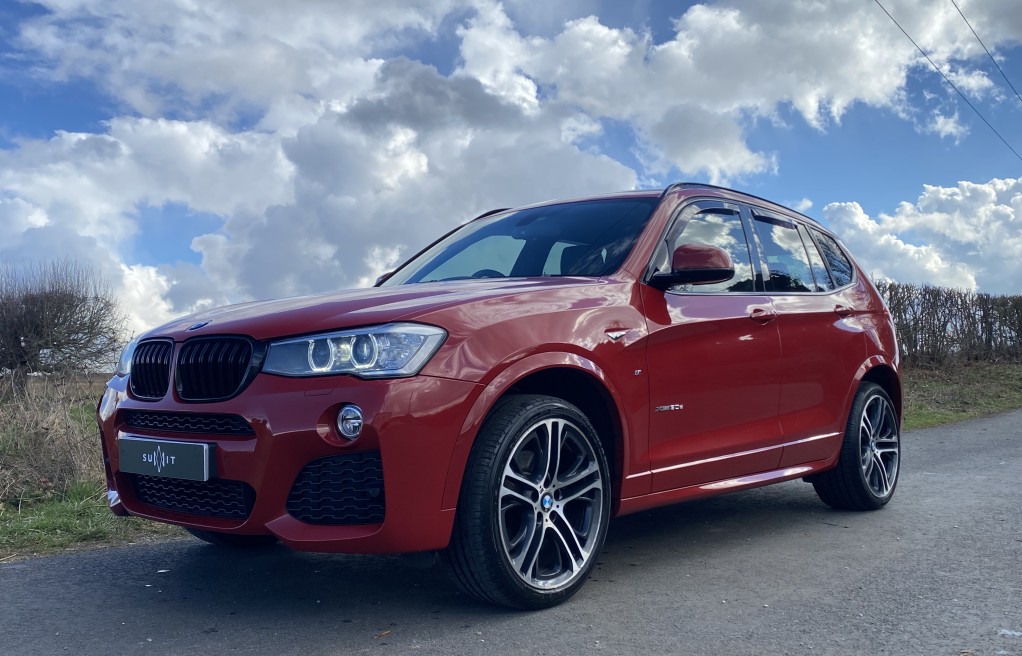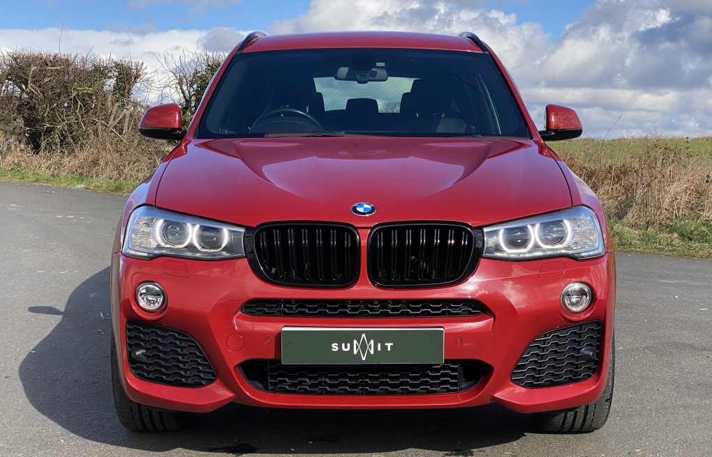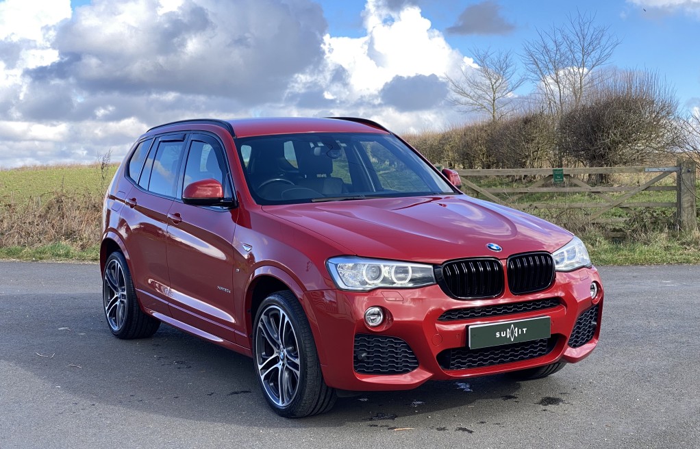 We are delighted to offer this exceptional, BMW X3 30d Msport "BMW Melbourne Red", with heated black Dakota leather seats. This vehicle has an exceptionally long list of extras including... The exceptionally rare BMW Electric folding Towbar, Visibility package, Msport plus package, Harmon Kardon Hi Fi music system, Professional Navigation media package, Heated Front Seats and Heated steering wheel, 20" Alloy wheels, Reverse Camera, Comfort access (keyless entry), and sun protection glass to mention a few (please see full specification list below). In addition to the excellent specification, this vehicle has full service history and 2 keys. The service history entries are as follows...