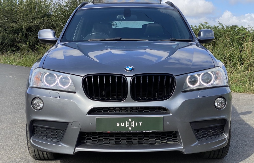 We are delighted to offer this exceptional, BMW X3 30d Msport, finished in "Space Grey" exterior metallic paint, with full black lather interior. This vehicle has an incredibly long list of optional extras, Some of these include: Professional media package, BMW Loudspeaker surround sound music system, 20" BMW 310M alloy wheels, Xenon Lights, Panoramic sunroof, electric folding mirrors, Sun protection glass, bluetooth with USB Audio interface, and Heated seats, to mention just a few (please see full specification list below). In addition to the excellent specification, this vehicle has exceptionally low milage, like new "BMW Star rated" Premium Pirelli P Zero 20" tyres (these tyres are essential for the BMW X-Drive system to function without issue) and comprehensive service history, nearly all of which is at BMW main dealers. The service history entires are as follows...