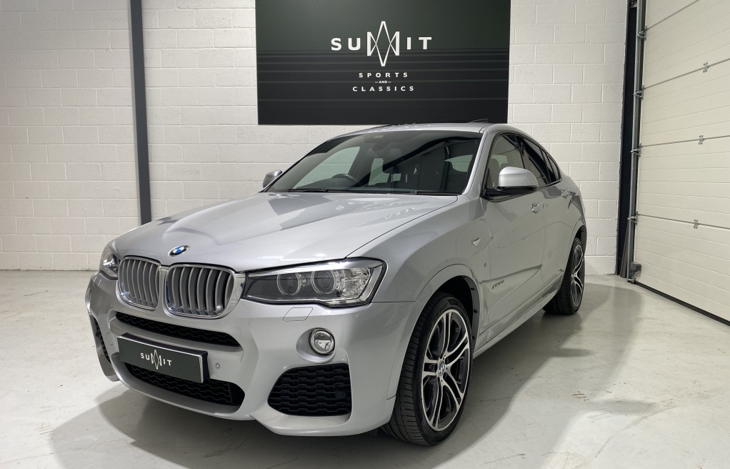 We are delighted to offer this exceptional, BMW X4 30d Msport finished in "Glacier Silver" Metallic paint. This vehicle has an exceptionally long list of extras including... The exceptionally rare Electric Glass Sunroof, Electric Memory Seats, Head up display, Detachable TowBar, Harmon Kardon Hi Fi system, 20" Double spoke alloy wheels, Professional Navigation package, heated Seats, Front and rear parking sensors and sun protection glass to mention a few (please see full specification list below). In addition to the excellent specification, this vehicle has previously full BMW service history and 2 keys. The comprehensive service history is as follows...