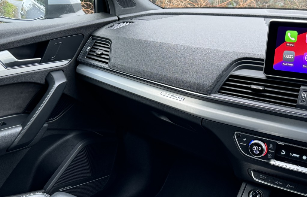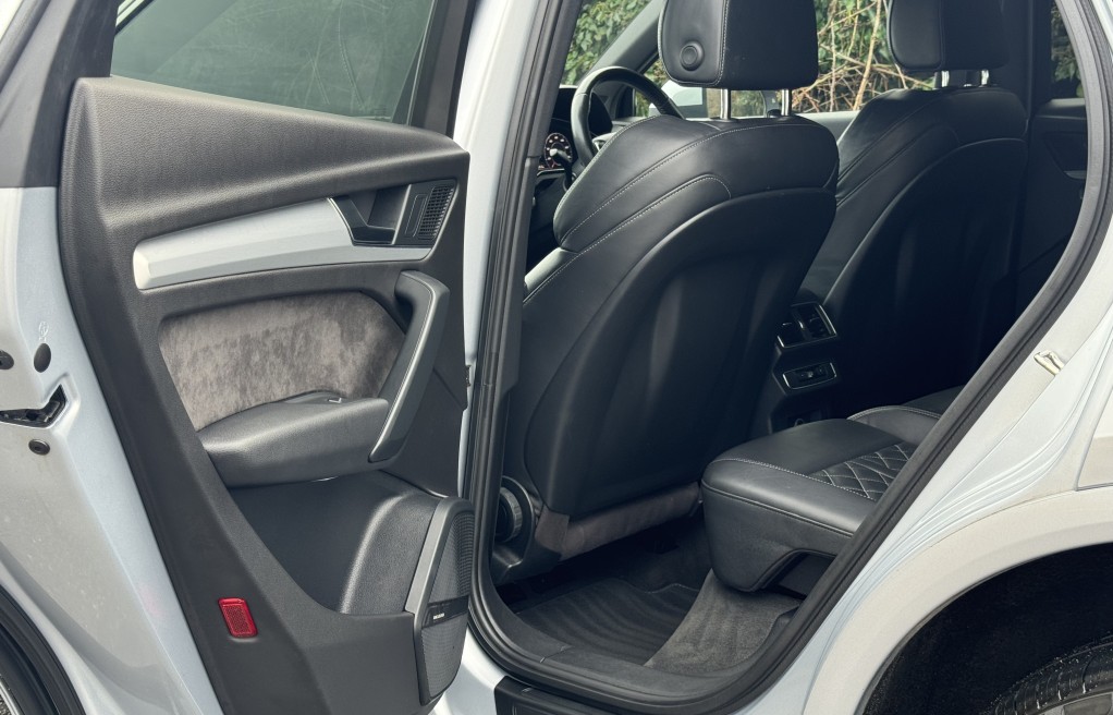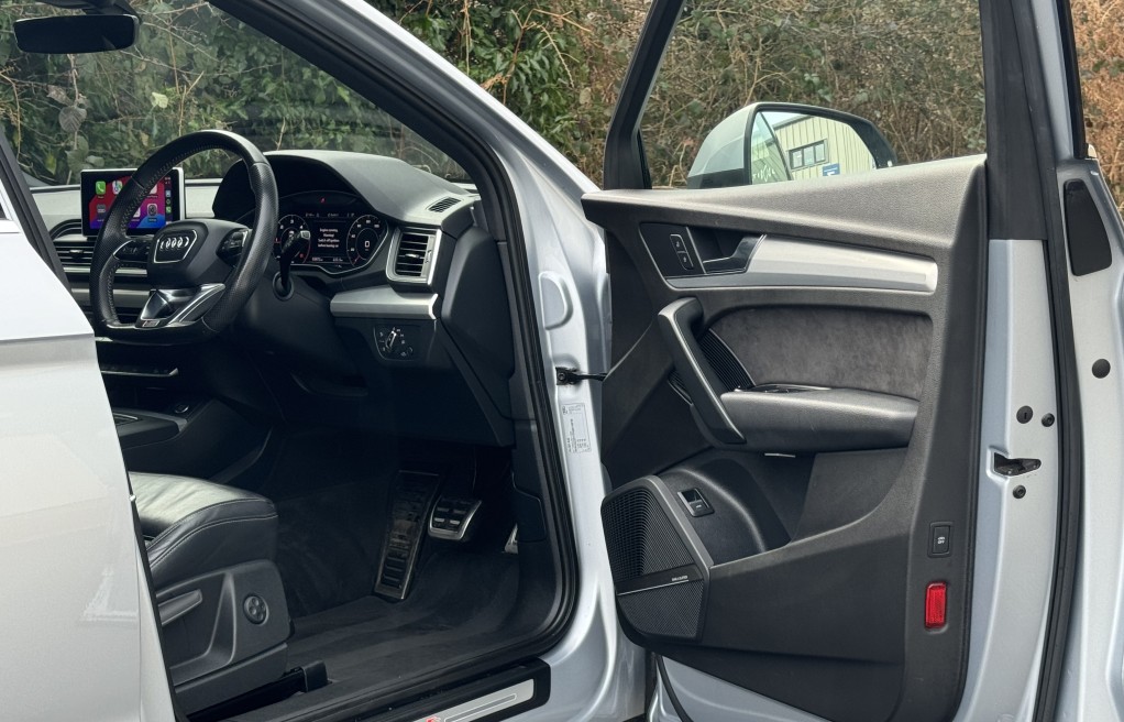 We are delighted to offer this superb Audi Q5. This vehicle is finished in "Floret Silver" metallic paint, complimented with full black "Fine Nappa S-Line" quilted leather seats. Furthermore, This vehicle has an incredibly extensive list of extras! Including items such as Matrix LED Headlights, Witter Detachable Towbar, Fine Nappa Seats, Split fold rear seat plus, Rear Camera, Bang And Olufsen surround sound, Tech pack with digital cockpit, and 20" Alloy wheels (see full list below) In addition, it comes with extensive Service history, all of which is with Audi Main dealers! 4x Premium Pirelli Scorpion Tyres (5.4 to 6.5mm tread depth) & 2 keys. The service records are as follows...