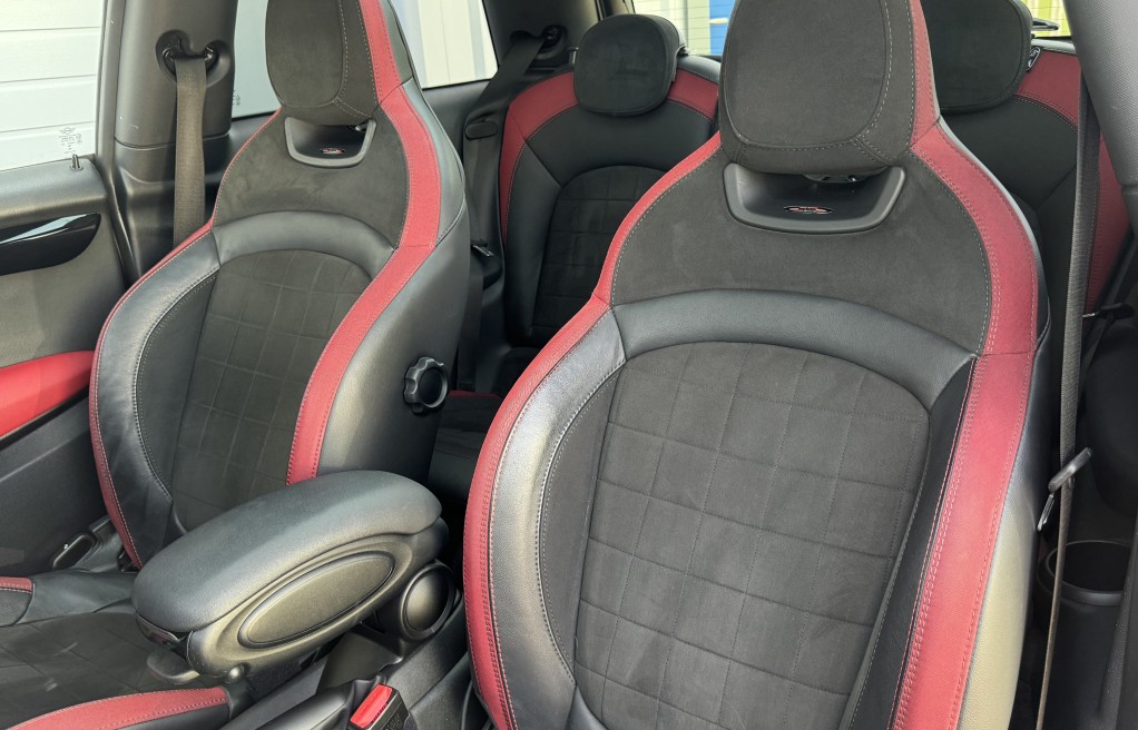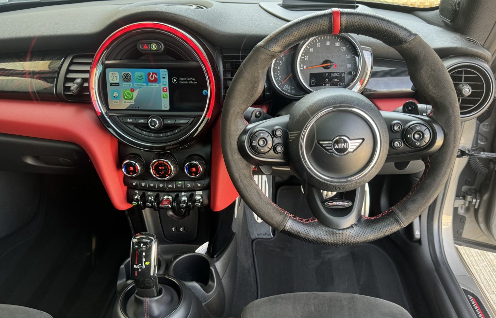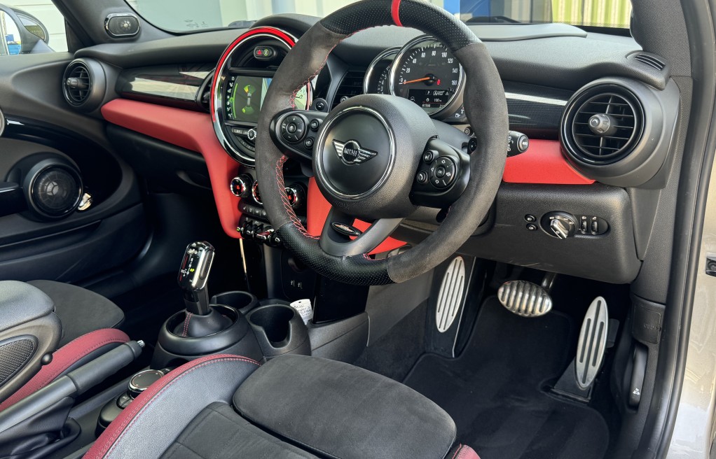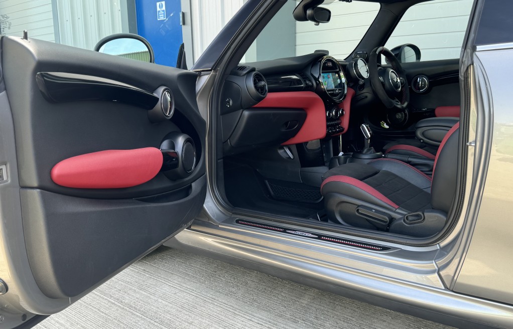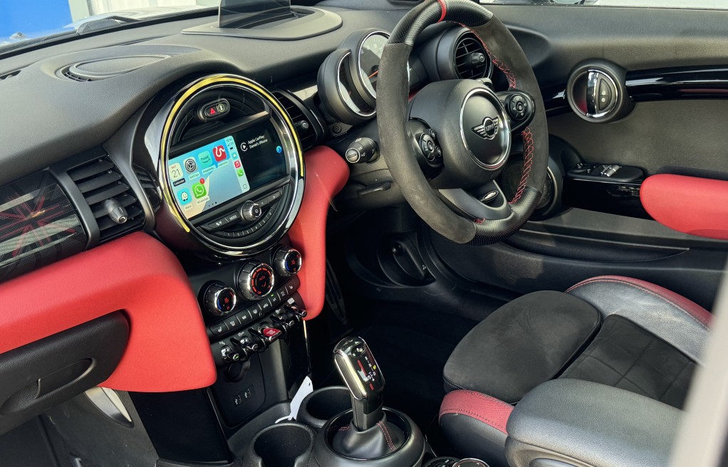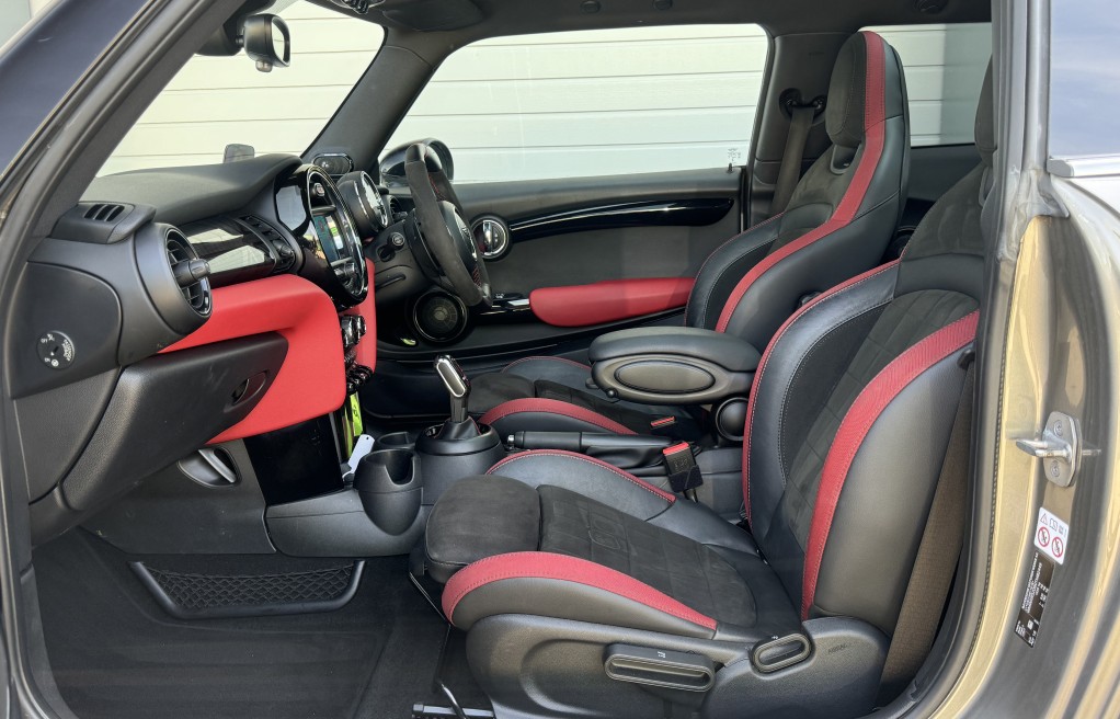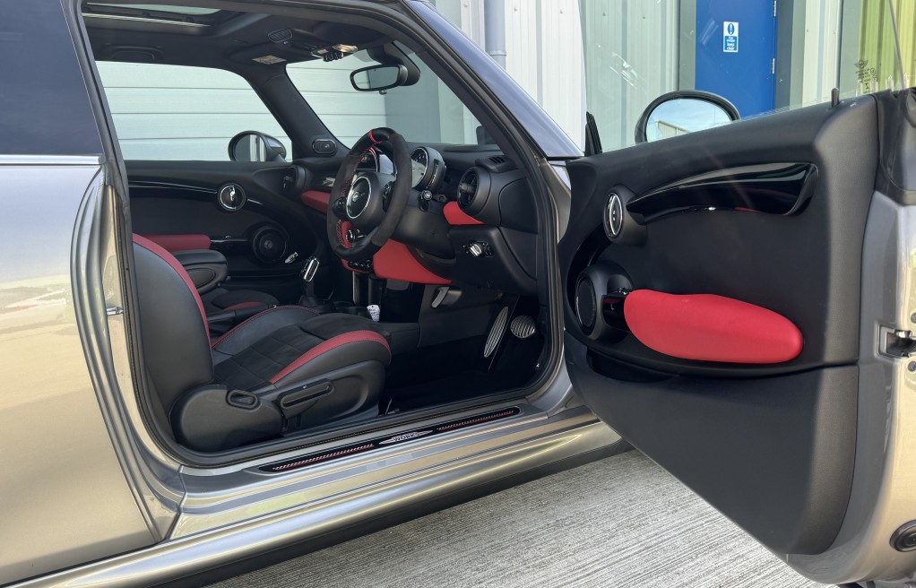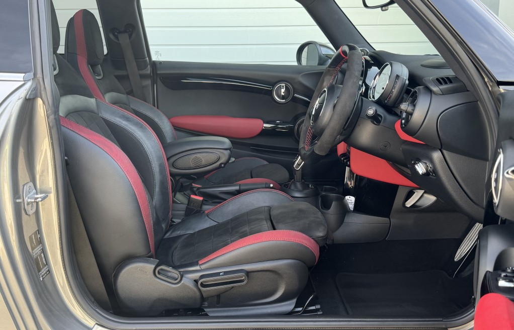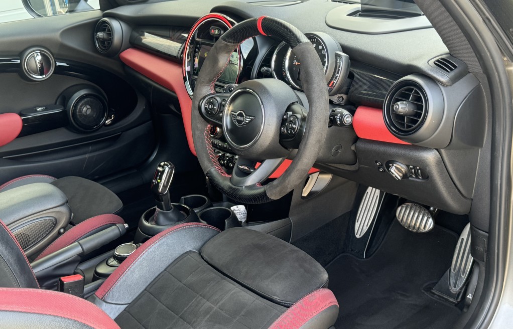 John Cooper Works Chili Pack, Navigation Plus Pack, Navigation, Panoramic Electric Glass Sunroof, 18in Alloy Wheels - Cup Spoke in 2-Tone with Run-Flat Tyres, Harman Kardon Hi-Fi System, Park Distance Control - Front and Rear, MINI Head-Up Display, Driving Assistant Pack, Adaptive Suspension, ACC - Active Cruise Control, Auto-Dimming Door Mirrors and Interior Rear View Mirror, Air Conditioning - Automatic Dual Zone, Rear View Camera, Seat Heating for Driver and Front Passenger - 3-Stage Heating Adjustment, Darkened Rear Glass, Interior Trim - MINI Yours - Piano Black Illuminated, Heated Front Windscreen, MINI Excitement Pack, Electrically Folding Exterior Mirrors, MINI Driving Modes, Anthracite Headlining, Storage Compartment Pack, Auto-Dimming Interior Rear View Mirror, Bonnet Stripes - Black, Front Centre Armrest, Interior Light Pack, Piano Black Exterior Trim, Rain Sensor and Automatic Headlight Activation, Colour Line - Glowing Red, Bluetooth with Wireless Charging, Roof and Mirror Caps - Black, Dinamica-Leather - Carbon Black, Apple Car Play, Alcantara Steering wheel