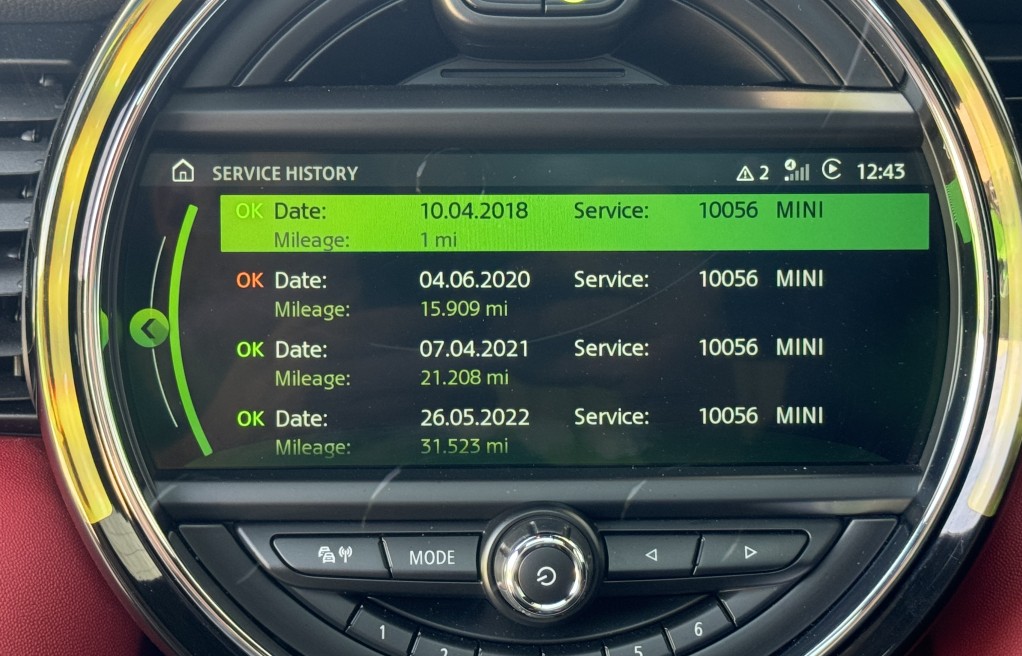 3). 26/05/2022 - 31,523 miles @ MINI,