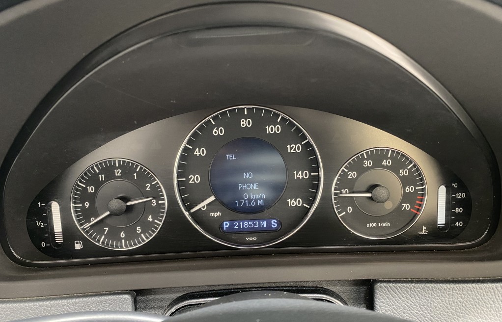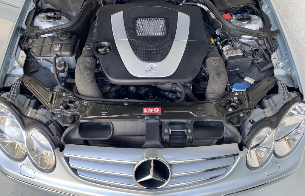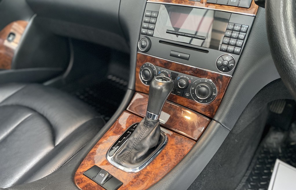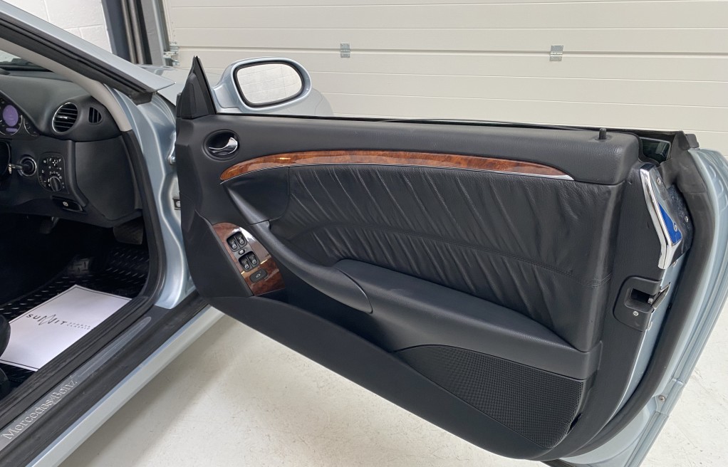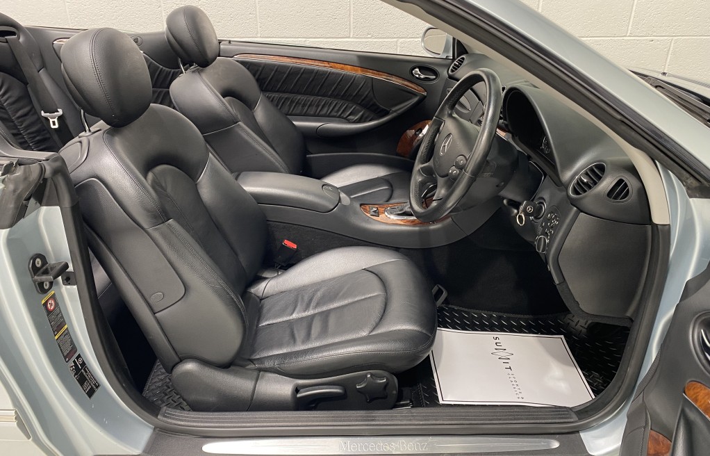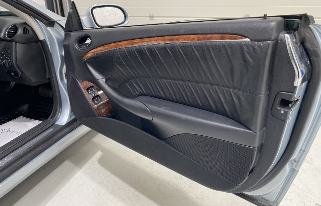 Inside the car the excellent condition reflects the low mileage. The leather seats are like new, the carpets are unmarked and the wood inserts in the dash and doors are glossy and smooth with no marks and the ruched leather door cards are superb. The power hood raises and lowers just as it should with a push of the button and the four electric windows work correctly. This CLK also has power fold mirrors, auto dipping lights, dual zone climate and cruise control among other features.