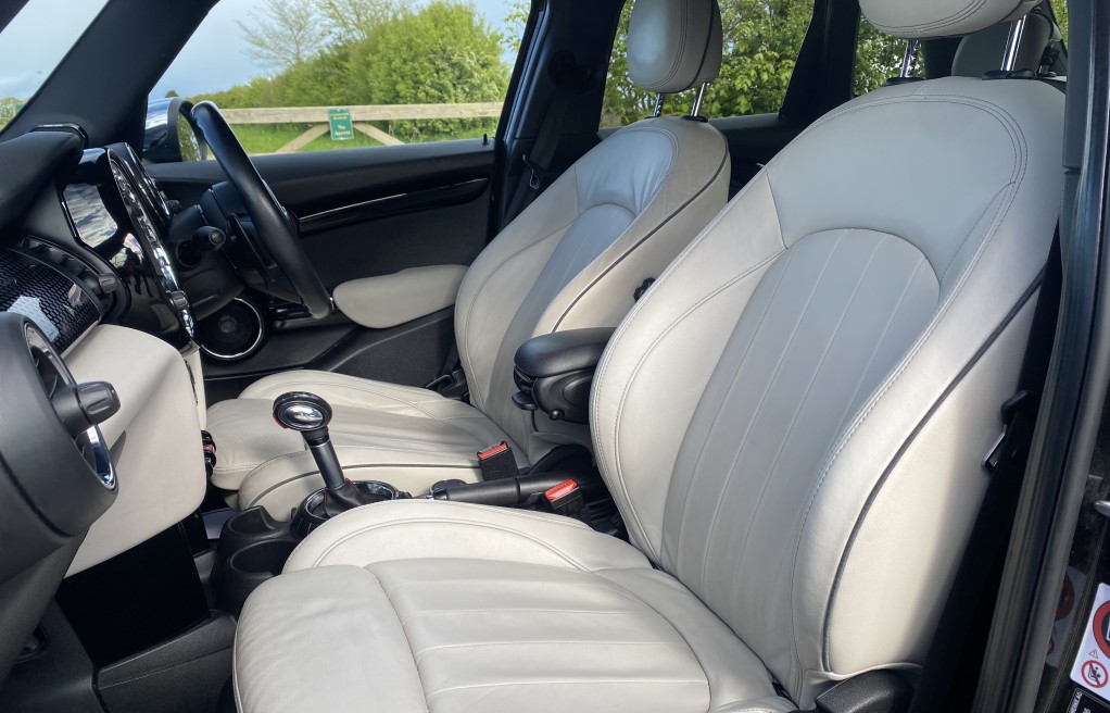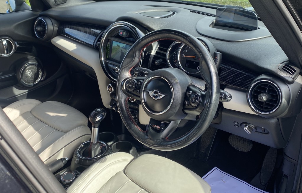 We are delighted to offer this exceptional, MINI Cooper S 5dr, finished "Midnight black" exterior metallic paint, with the optional, and extremely rare, "MINI Lounge Satellite grey", heated leather seats. Furthermore, this vehicle has an incredibly long list of extras which total £11,990! Some of these include the Chilli Package, Media Package XL, Technology package, Driving assistance pack, Active cruise control (otherwise known as radar cruise control), Variable Damper control, Harmon Kardon HiFi music system, Head Up Display, Dual Zone Climate control, front and rear Parking sensors with parking assist, Mini driving modes, electric folding exterior mirrors and Heated seats, to mention just a few (please see full specification list below). In addition to the excellent specification, this vehicle has 2 keys and finally It comes with previous service history. The service history entries are as follows...