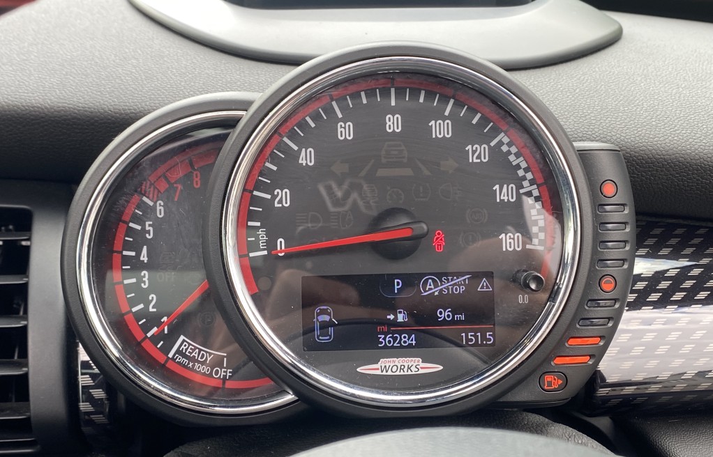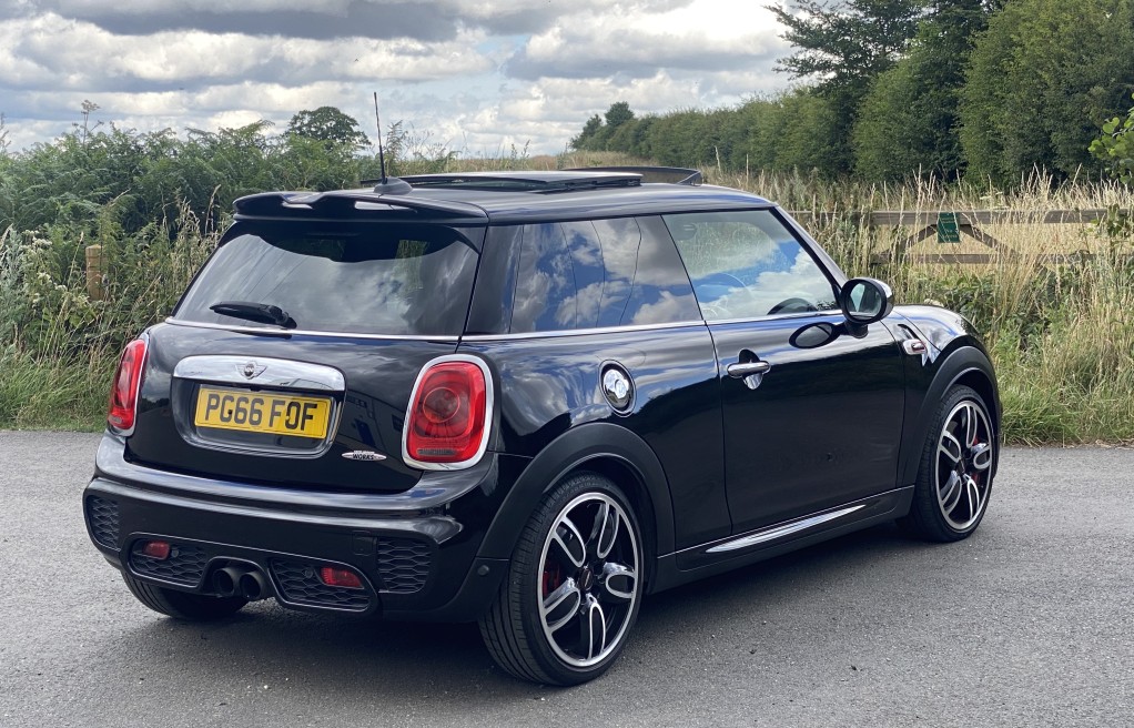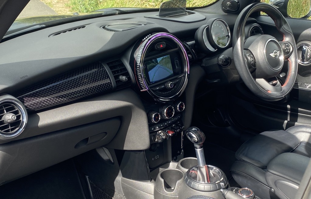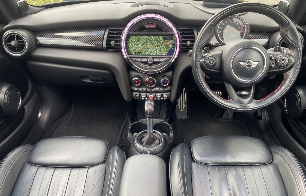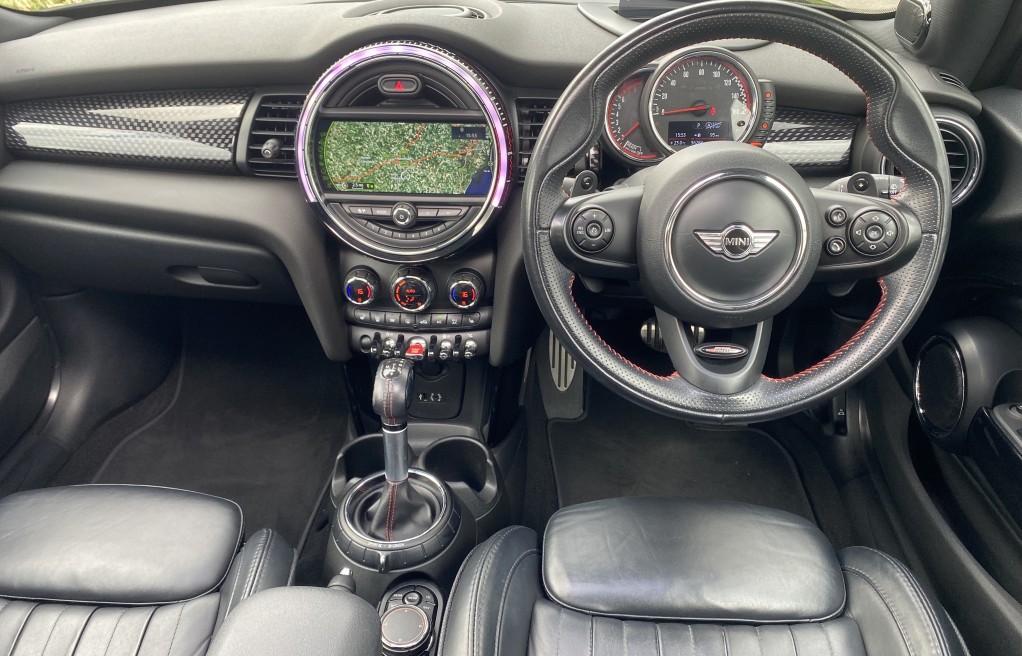 12Volt Socket in Front Centre Console, 17in Alloy Wheels - John Cooper Works Track Spoke - Silver, 3 Point Seatbelts on all Seats, 3rd Brake Light - LED Along Top of Rear Window, Air Conditioning - Manual, Airbags for Driver and Front Passenger - 6 Airbags as Standard, Alarm and Immobiliser - Thatcham CAT 1, Anthracite Headlining, Anti-Lock Braking System - ABS, Automatic Door Window Lowering by Approx 6mm When Door Opens, Bluetooth Hands Free Function with USB Audio, Boot Release via Remote Control, Brake Pad Wear Indicator, Chrome Bezels around Rear Lights and Headlights, Chrome-Plated Fuel Filler Cap in Rear Right Side Panel - Linked to Central Locking, Colour Line - Carbon Black, Condition Based Service, Crash Sensor, Cruise Control with Brake Function, Cupholders - Two in Front and One in the Rear Centre Console, DAB Tuner, DTC - Dynamic Traction Control with EDLC - Electronic Differential Lock Control, Decorative Rings Surrounding Dashboard Instruments in Chrome Plated, Door Handles - Chrome Plated, Door Sill Finishers - Metal Look and Model Dependent Lettering, Dynamic Stability Control - DSC, Easy Entry Access to the Rear Seats and Memory Function for Driver's Seat Base, Engine Scoop in Body Colour, Exhaust Tailpipe - Visible Double Round Central with Chrome Finishers, Exterior Mirrors - Aspheric on Drivers Side - Electrically Adjustable, External Visible VIN, Foldable Rear Backrest 60-40, Follow Me Home Function, Front Passenger ISOFIX and Airbag De-Activation Switch, Front Side Indicators - White, Fuel Pump Automatic Cut-Off in Crash Situation, Gearshift Lever Knob - Leather with Red Seam, Gearshift-Selector Lever and Handbrake Lever Gaiters in Sensatec Artificial Leather, Handbrake Lever Grip - Plastic, Headrests For All Seats - Manually Adjustable and Two Rear Folding Headrests, Heated Mirrors and Windscreen Washer Jets, Heated Rear Window with Automatic Deactivation, Heated Window Heater, Intelligent Emergency Calling - E-Call, Interior Door Handles - Chrome Plated, Interior Lights - Integrated into Centre Front Headliner, Interior Mirror - Mechanical Anti-Dazzle, Interior Surface in Black Chequered Design, Interior Trim - Black Chequered, John Cooper Works Aerodynamic Kit, John Cooper Works Leather Steering Wheel, John Cooper Works Roof Spoiler, John Cooper Works Sport Seats, LED Headlights and Daytime Running Lights and Tail Lights, Lashing Eyes in Luggage Compartment, Locking System with Central Locking, Luggage Compartment - Light, MINI Central Display with LED Ring, MINI Driving Modes, MINI Mobility System, MINI TeleServices, MINIMALISM Fuel Saving Technology, Mechanical Seat Adjustment - Six Way Drivers Seat and Passengers Seat, Microfilter, Mirror Caps in Body Colour, Multifunction Controls for Steering Wheel, Non Smoker Package, Oddments Trays at Rear - Right and Left, On-Board Computer, Passenger Seat Height Adjustable, Performance Control, Personal Profile, Power Steering with Servotronic, Radio with Four-Line Display, Rear Fog Light, Rear Window Wiper, Reversing Light, Revolution Counter, Roof in Body Colour, Security Locking Wheel Bolts, Side Scuttles Chrome-Plated with John Cooper Works Logo with Integrated Direction Indicator White, Sills - Bumper Edges - Wheel Arch Cover in Black, Speakers - Two Mid Range in Front Doors and Two Woofers under Front Seats, Speedometer on Steering Column, Sport Suspension, Stainless Steel Embellisher at Bottom Edge of all Windows, Start-Stop Button with Keyless Start, Steering Wheel Column Adjustment Mechanically in Height and Length, Storage Options, Sun Visors with Integrated Vanity Mirrors on Drivers and Passengers Sides, TPWS - Tyre Pressure Warning System, Tool Kit in Luggage Compartment, Twin Horns, White Direction Indicators Lights, Window Lifts - Electrical for Drivers and Front Passengers Sides.