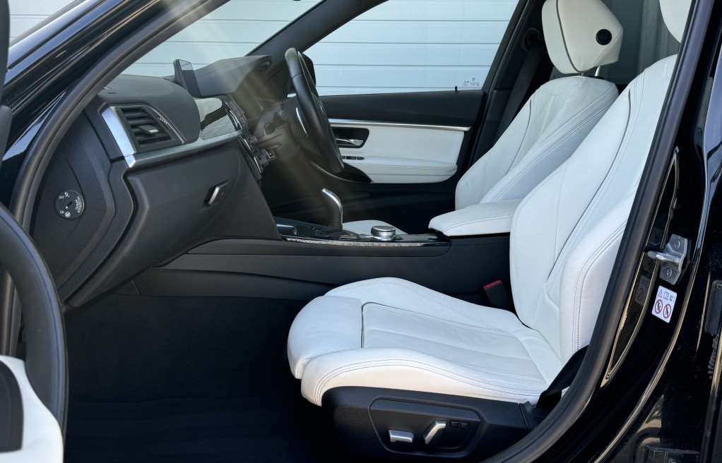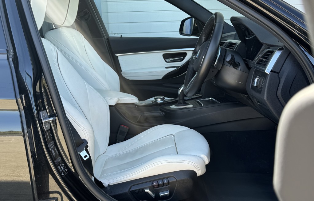 We are delighted to offer this superb BMW 330d X-drive Touring. This vehicle is finished in "BMW Black Sapphire" metallic paint, complimented with the very rare BMW Individual Opal white merino leather interior.