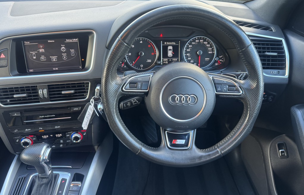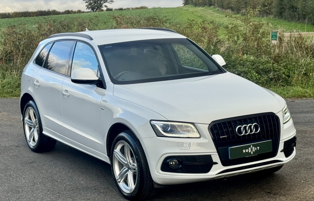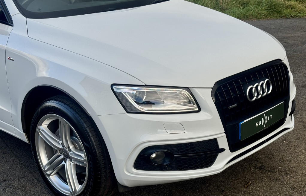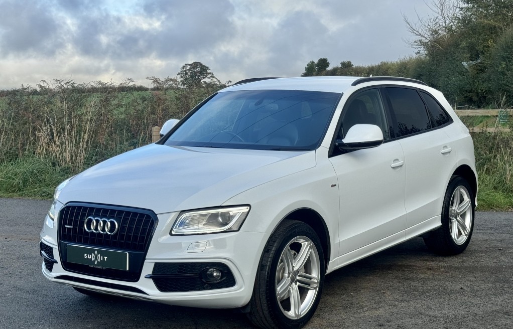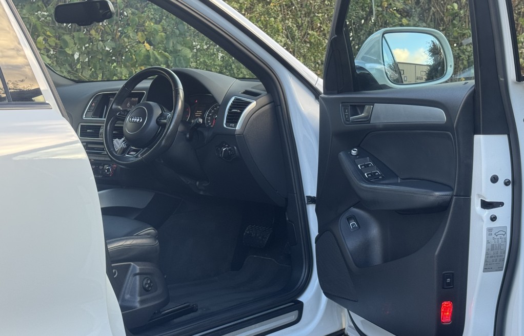We are delighted to offer this incredibly rare, 1 owner from new! Audi Q5 Sline, with EXCEPTIONALLY low milage. This vehicle was supplied brand new by Peterborough Audi on the 12th of June 2015, to its first and only owner. The vehicle has remained in the Peterborough area ever since, and only been used on longer trips as the previous owner had a second petrol vehicle, which was used for short journeys. The previous owner also confirmed that the towbar was also never used for towing anything "heavy", instead was used for a small gardening trailer and occasionally a bicycle rack attachment. Sadly, this vehicle has come to us for sale directly from the previous owners family, following a bereavement. , , In addition, it comes with 2 keys, 2 x brand new front tyres (rear tyres are at 5 and 5.5mm tread depths). The personal registration number of R20AJA is also included, and finally, extensive Service history, even given its low mileage The service records are as follows....