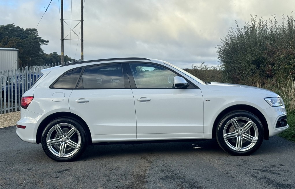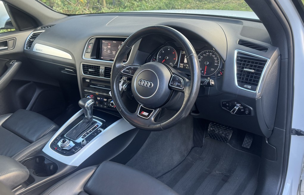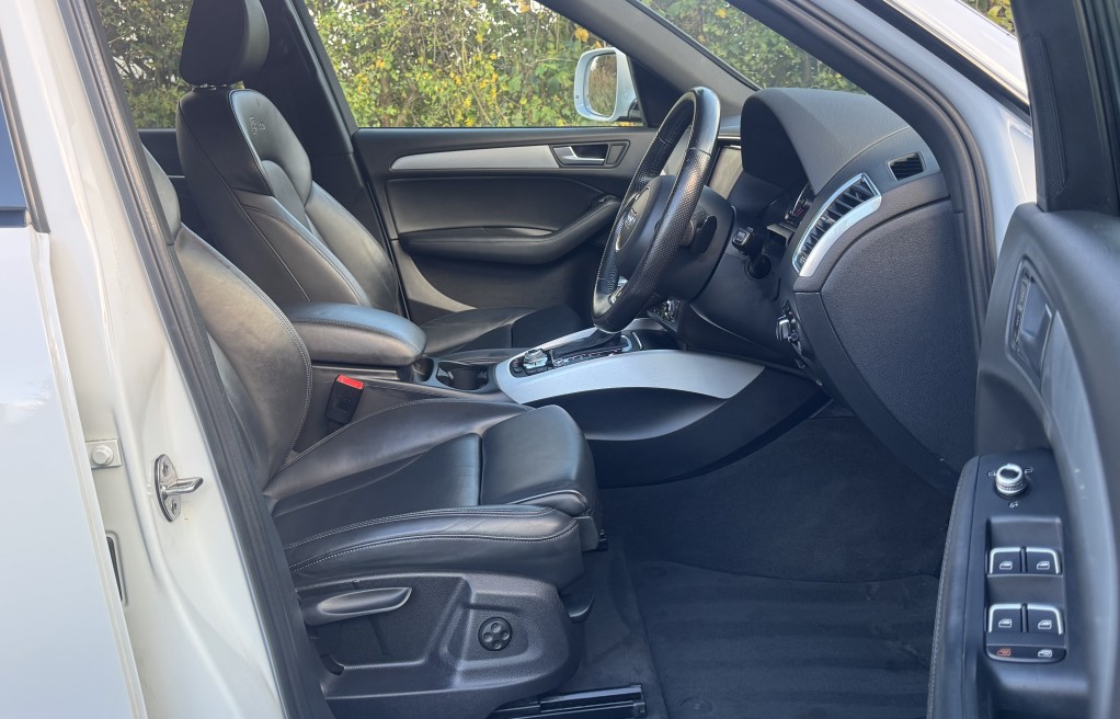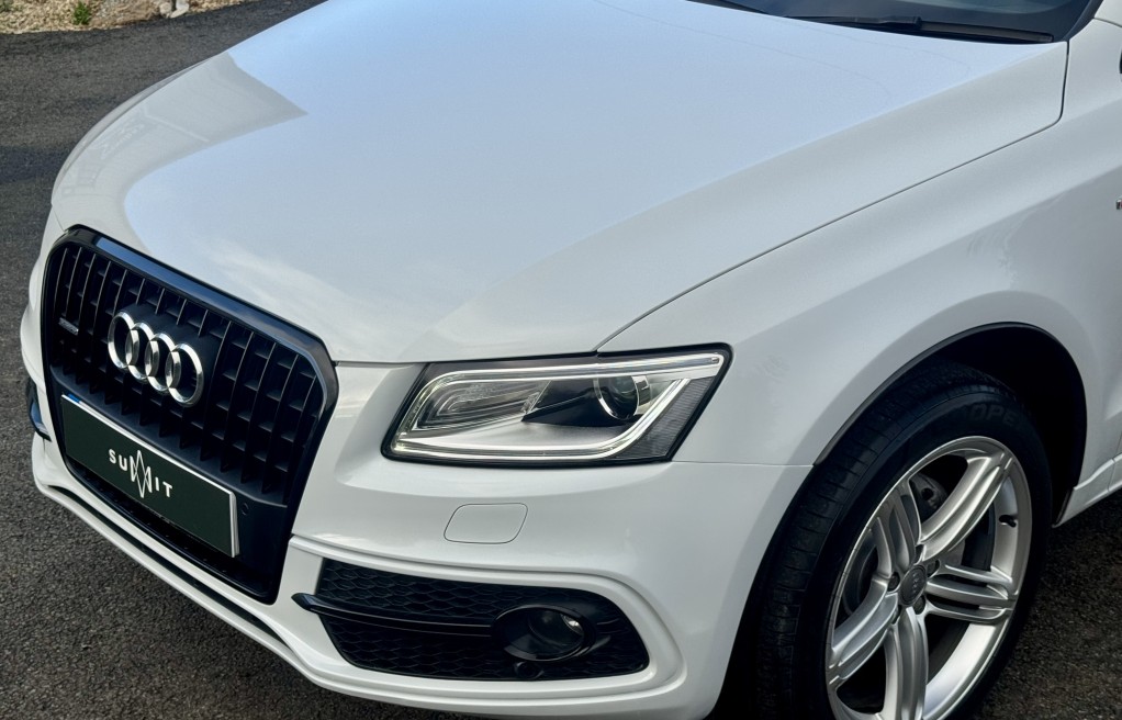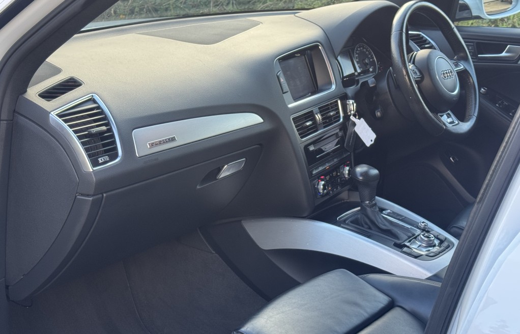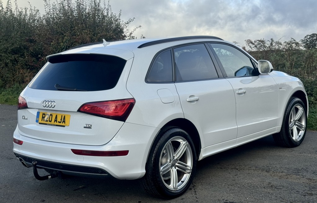 We are delighted to offer this incredibly rare, 1 owner from new! Audi Q5 Sline, with EXCEPTIONALLY low milage. This vehicle was supplied brand new by Peterborough Audi on the 12th of June 2015, to its first and only owner. The vehicle has remained in the Peterborough area ever since, and only been used on longer trips as the previous owner had a second petrol vehicle, which was used for short journeys. The previous owner also confirmed that the towbar was also never used for towing anything "heavy", instead was used for a small gardening trailer and occasionally a bicycle rack attachment. Sadly, this vehicle has come to us for sale directly from the previous owners family, following a bereavement. , , In addition, it comes with 2 keys, 2 x brand new front tyres (rear tyres are at 5 and 5.5mm tread depths). The personal registration number of R20AJA is also included, and finally, extensive Service history, even given its low mileage The service records are as follows....