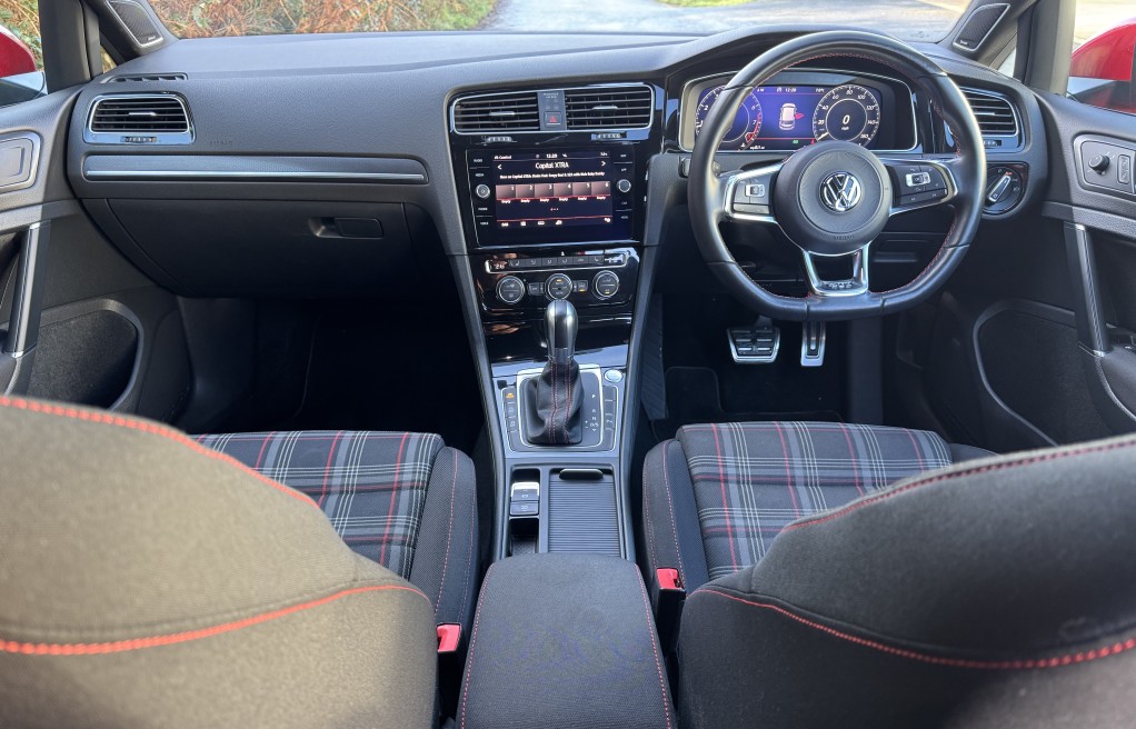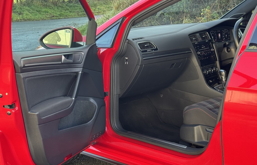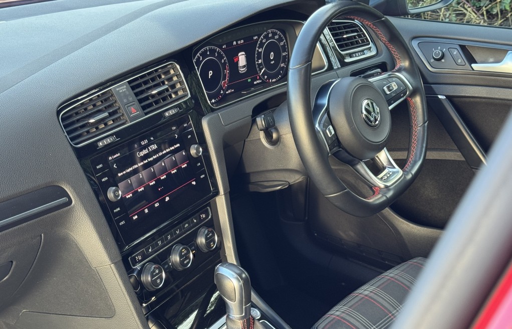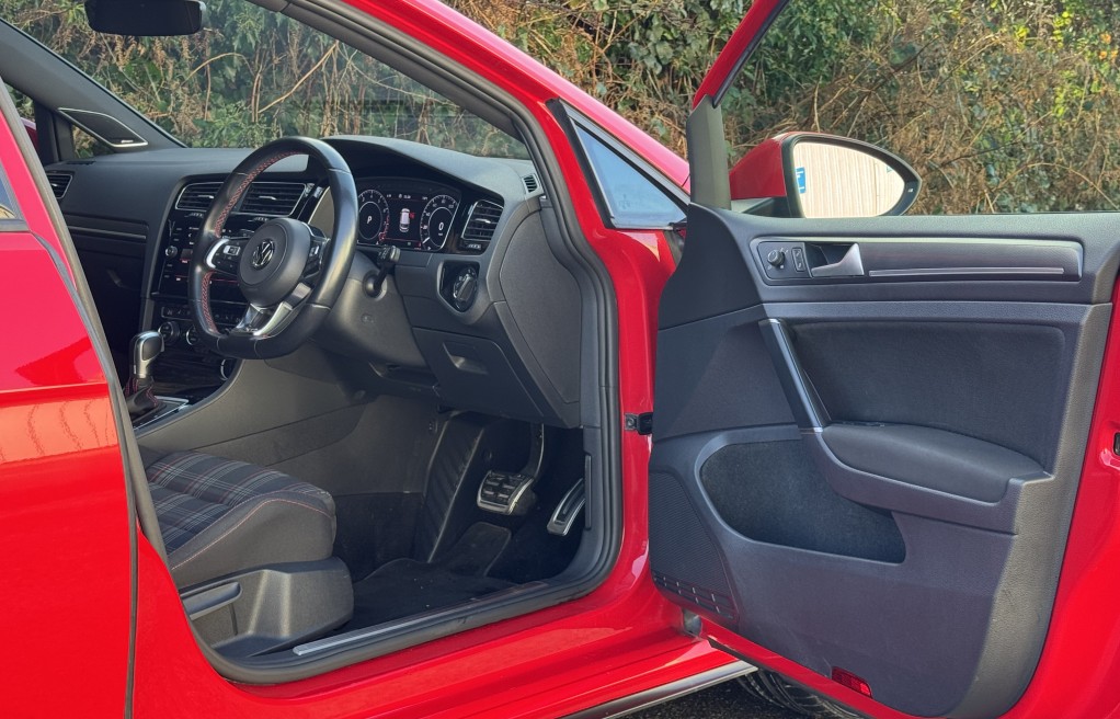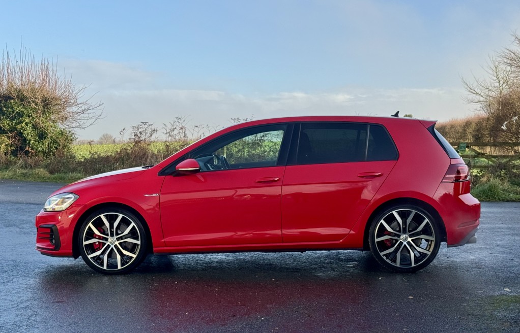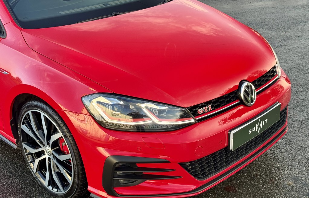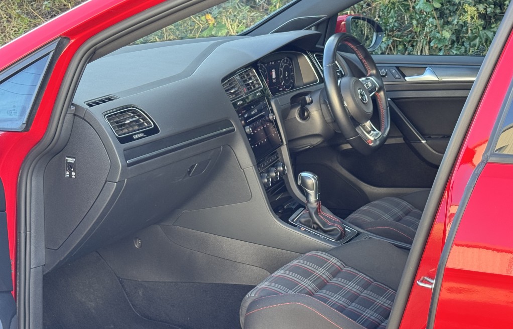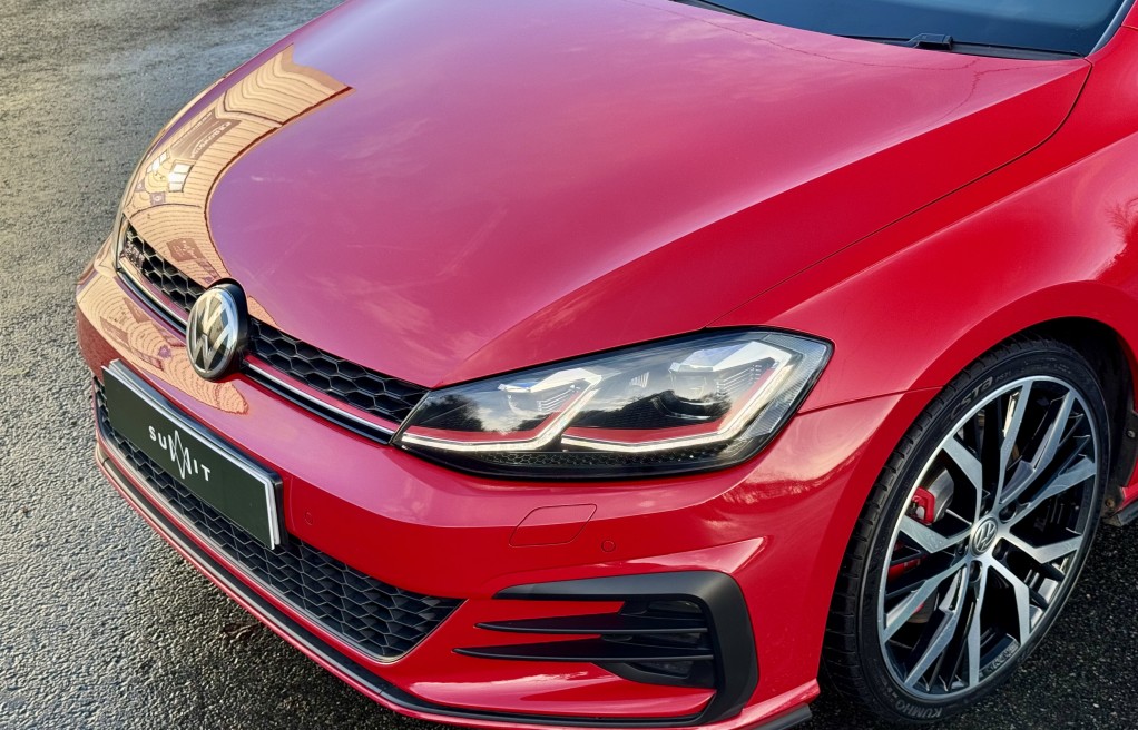 We are delighted to offer this superb Volkswagen Golf GTi. This vehicle is finished in "Tornado Red" metallic paint, complimented with the iconic tartan cloth interior. This vehicle has an incredibly extensive list of extras! In fact, One of the highest specifications we have seen on a mk7.5 Gti! Including 19" Santiago Wheels, Dynamic Chassis control, DYNAUDIO Surround sound system, Keyless entry and Rear view camera to mention just a few. In addition, it comes with extensive Service history, all of which is with Volkswagen, & 2 keys. The service records are as follows....