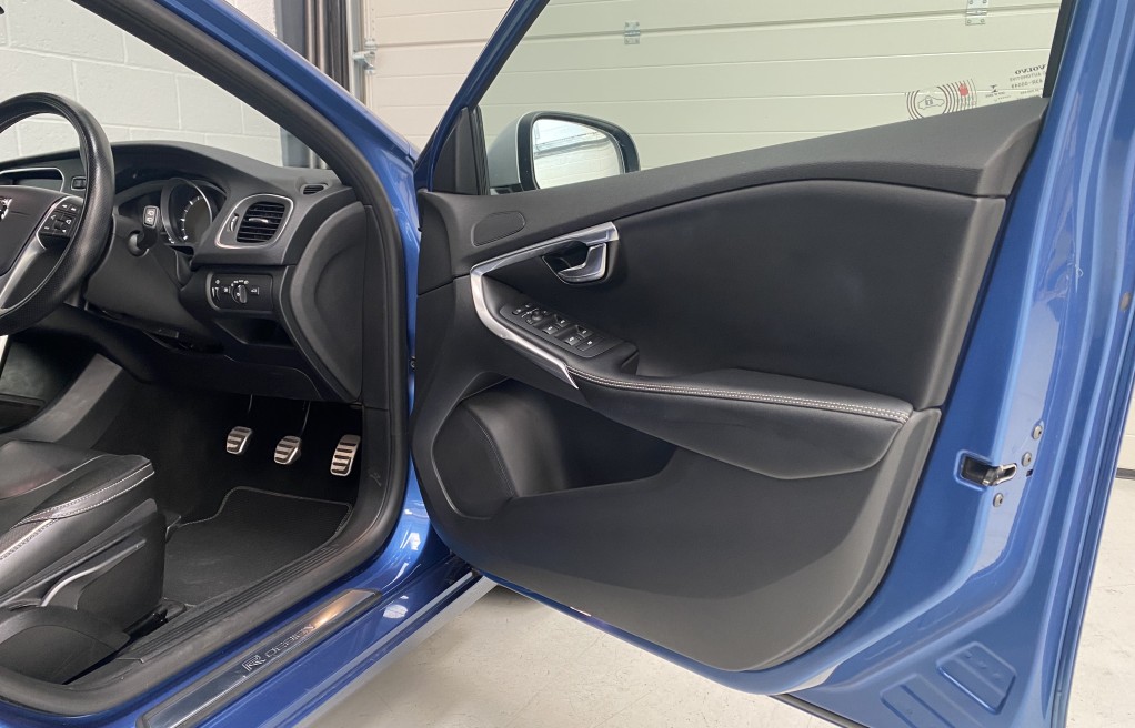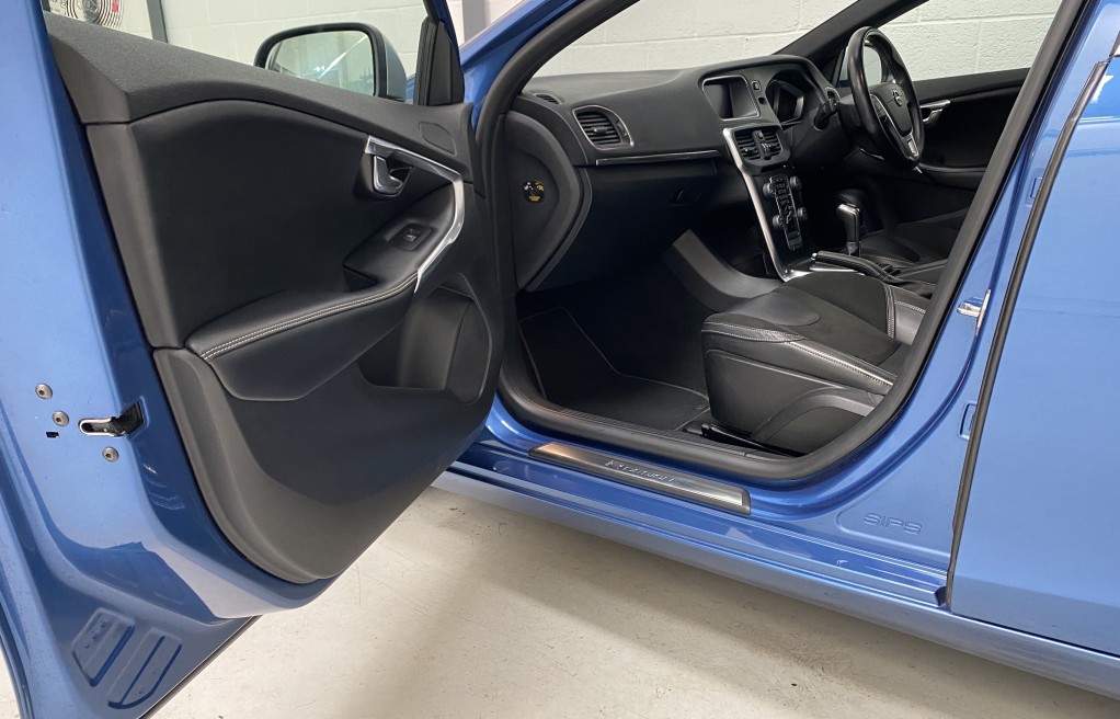 We are delighted to offer this exceptional, Volvo V40 R-Design, in the extremely desirable colour "Bursting blue". Finished inside with the black part leather interior and the ever sought after, heated seats. In addition to the heated seats, this vehicle has a long list of specification including... 17" diamond cut Alloy wheels, satellite navigation, bluetooth telephone, optional Winter pack and optional tinted rear windows (full list of extras are listed below). In addition to the excellent specification, this vehicle has comprehensive full Volvo main dealer service history, 2 keys, and finally comes with 6 months warranty. The details of the service history are as follows...