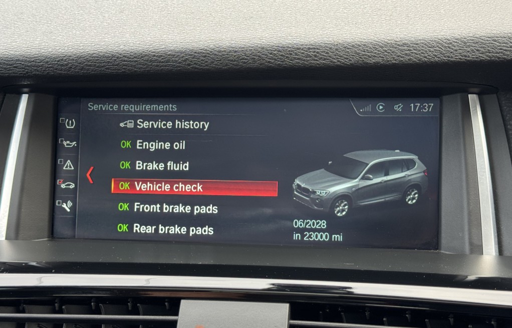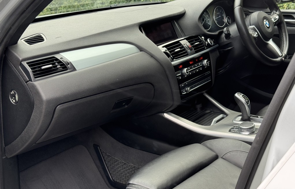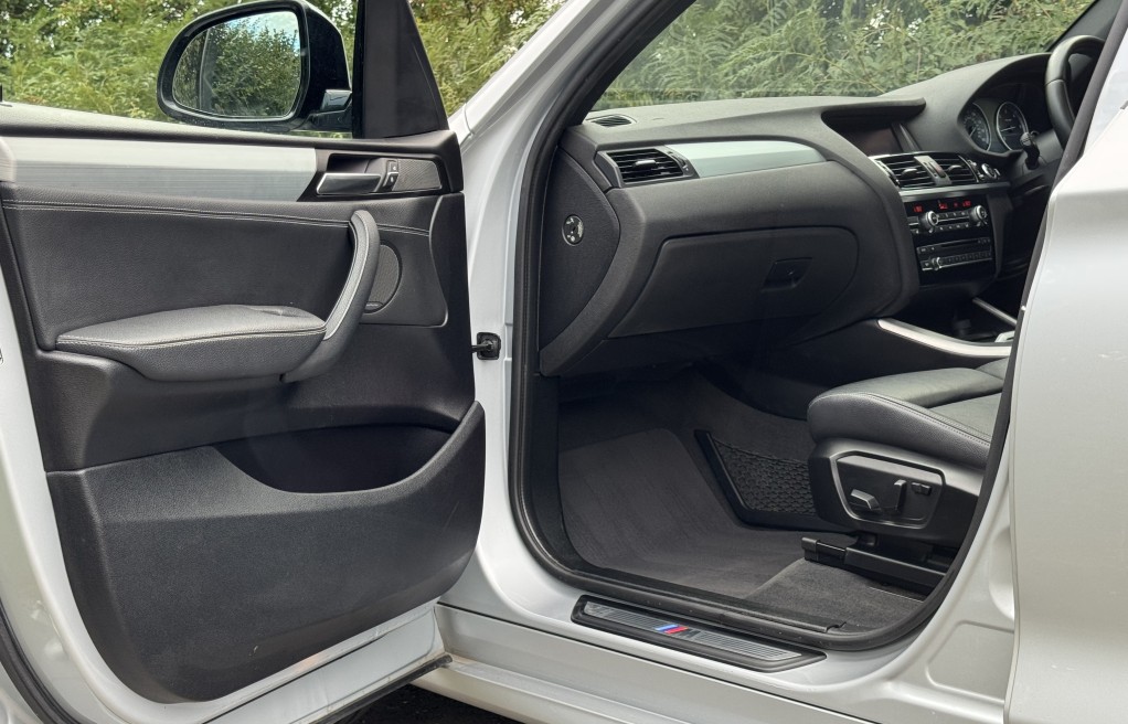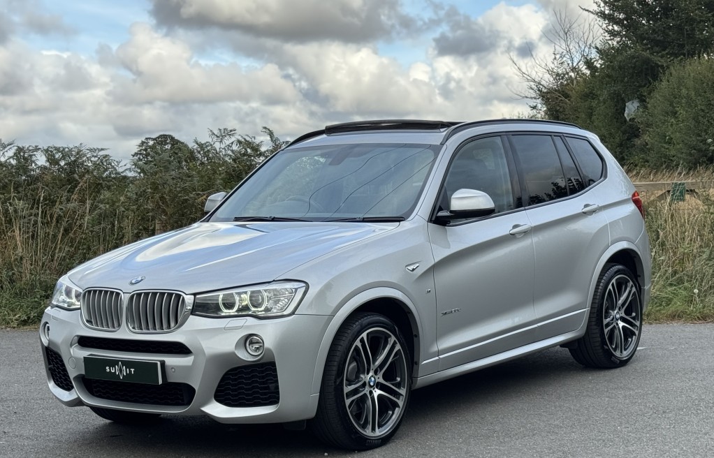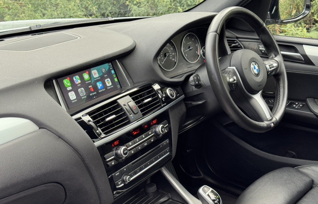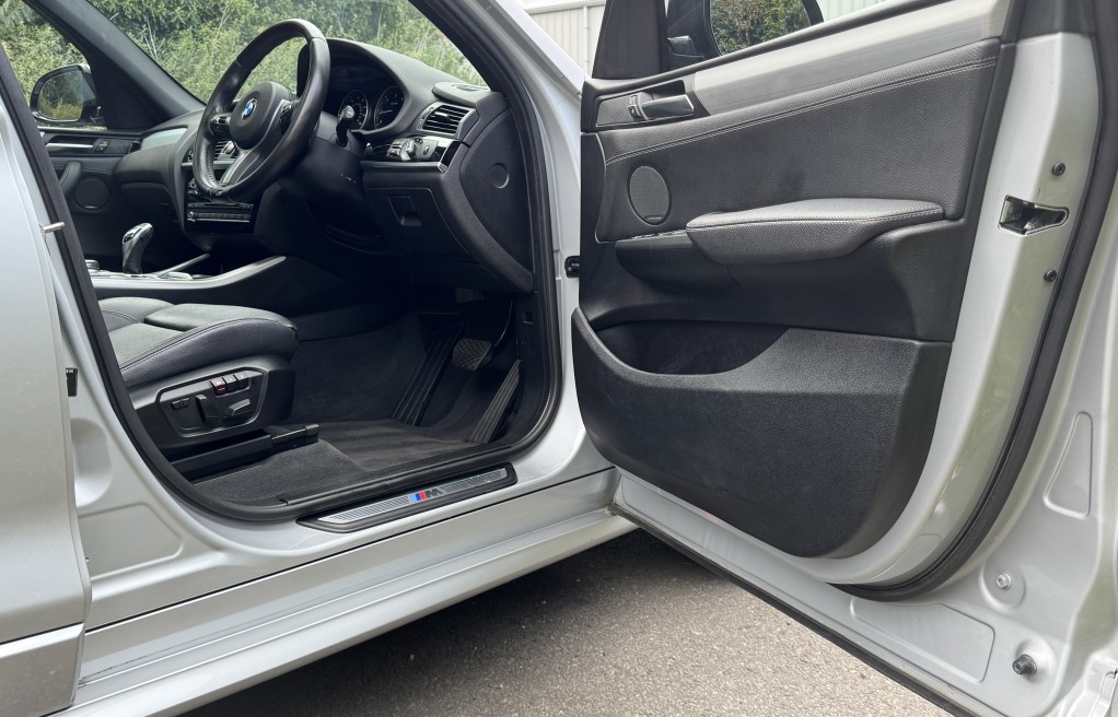We are delighted to offer this superb BMW X3 30d. This vehicle is finished in "BMW Glacier Silver" metallic paint, complimented with BMW Vernasca Black leather interior. This vehicle has an incredibly extensive list of extras! In fact, One of the highest specifications we have seen on a BMW X3 30d, totalling over £9,000 from NEW!! including over £2,500 of Audison HiFi music system with Audison amplifier, this is THE BEST system money can buy for the BMW range, and a major upgrade on the Harmon Kardon system often fitted to BMWs. It also comes with rare extras such as Panoramic Sunroof, Visibility Pack, Msport Plus Pack, Apple Car Play, Reverse camera and electric memory seats to mention just a few., , In addition, it comes with 4x Pirelli BMW Star rated tyres (incredibly important for BMW Xdrive calibration). Extensive Service history, all of which is with BMW, & 2 keys. The BMW service records are as follows....